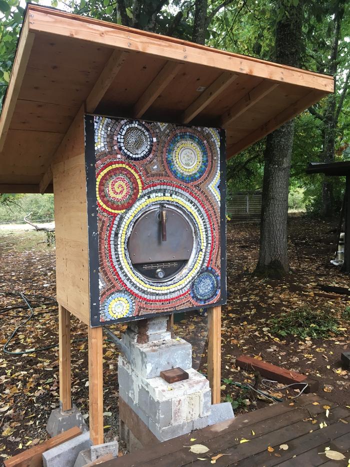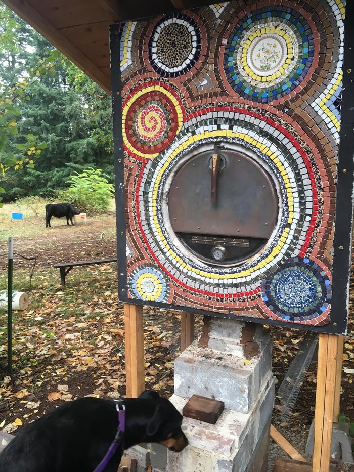 The center of the lower right blue themed circle is also made from pieces of a fancy plate. I put a request on NextDoor for cracked/broken pottery and got a few really nice pieces.