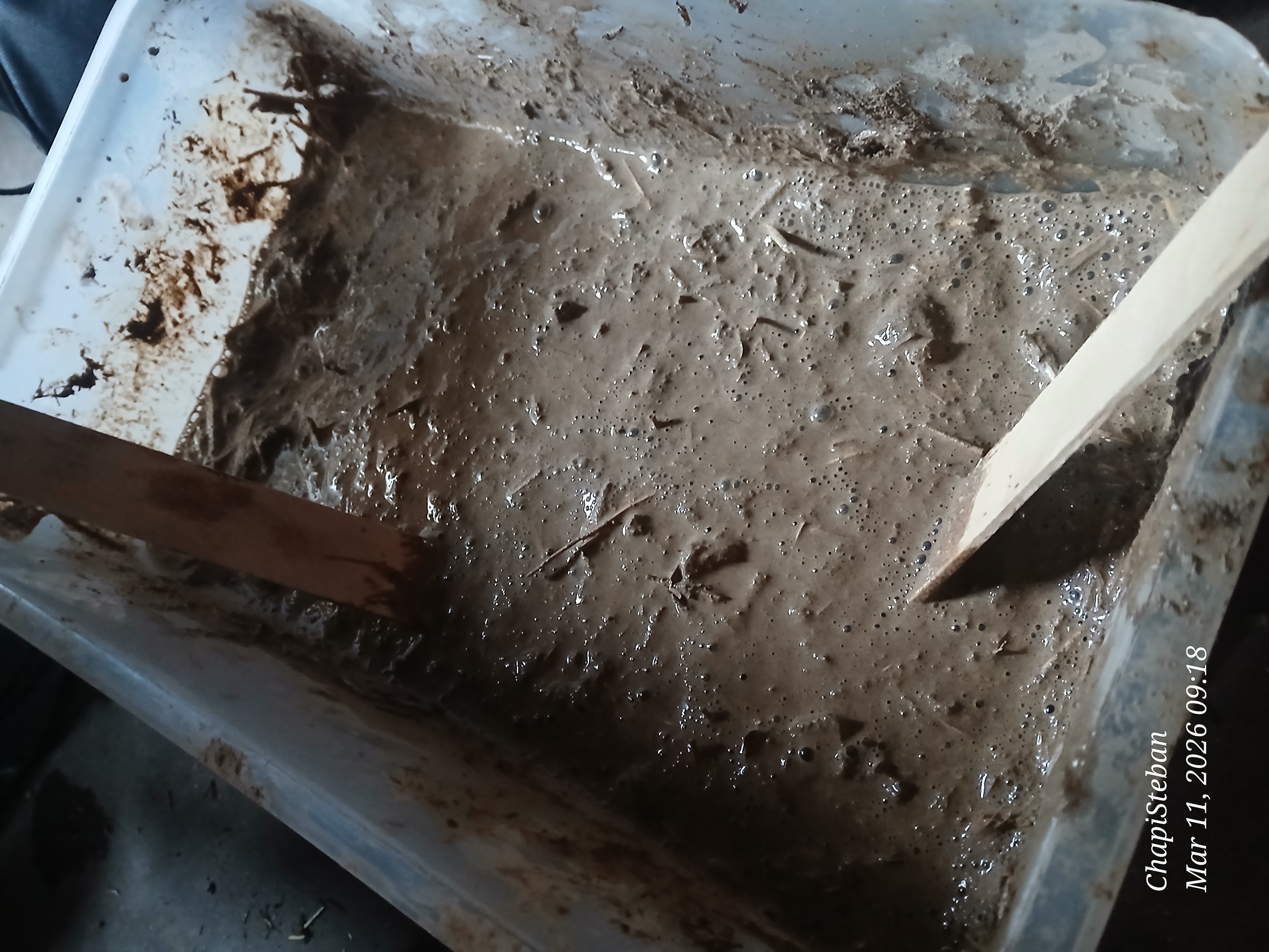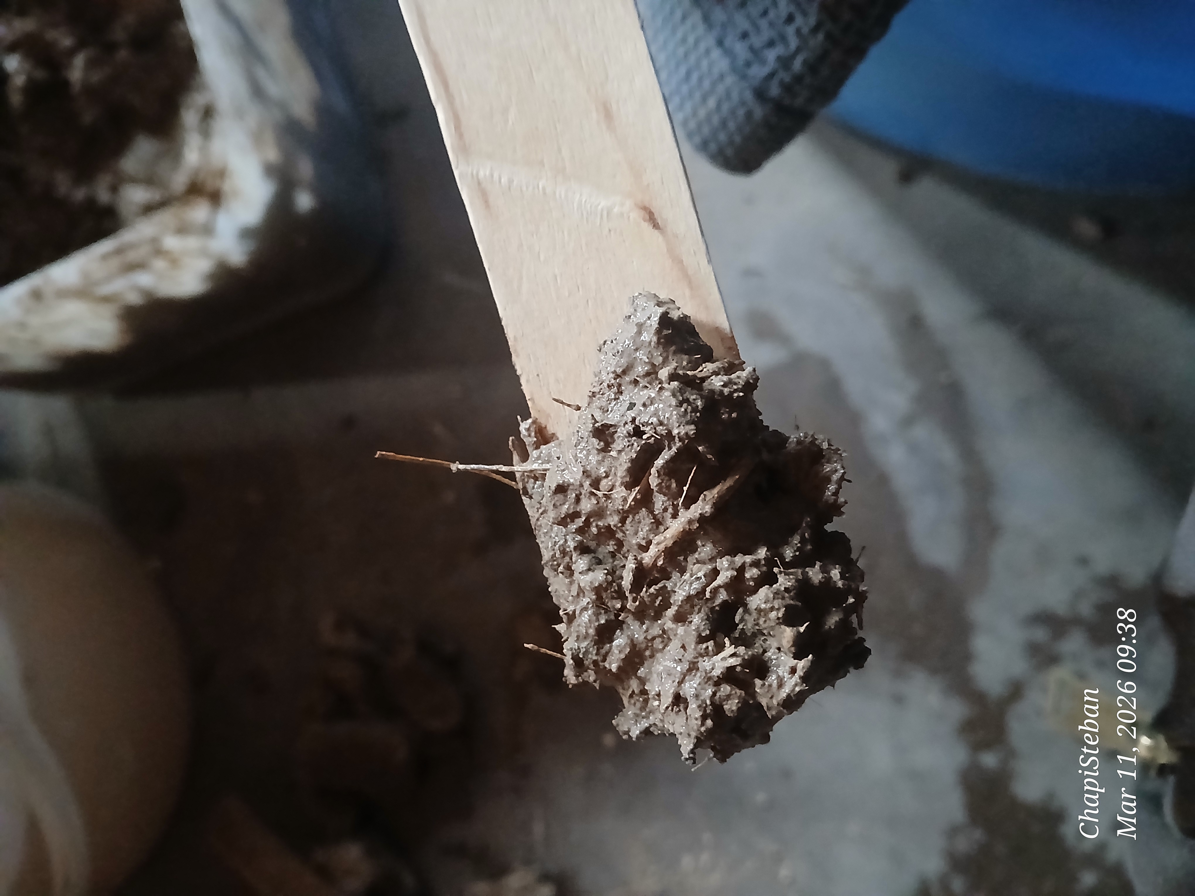 After the morning meeting we headed out to the Abbey and started making cob. The goal was to begin filling the crevices around the wood flooring piece we installed earlier. It felt good finally getting to that stage and seeing the piece come together more solidly as we packed the cob into the gaps.