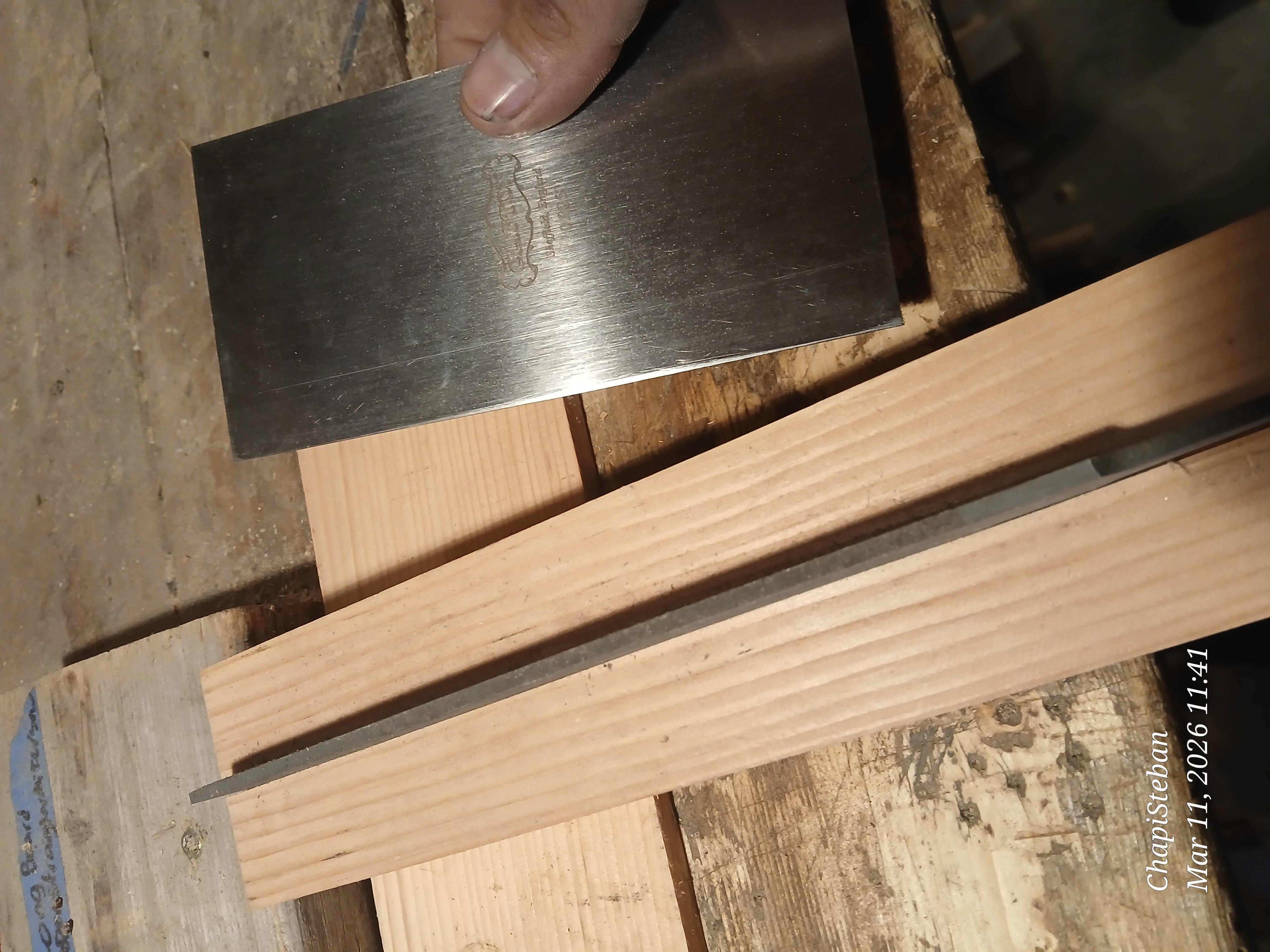 Afterwards we gathered at the library watched an instructional video about sharpening a card scraper. Once we had a better idea of the technique, we gave it a try ourselves and practiced putting a proper edge on the scraper and using it. It’s a small tool but surprisingly effective once it’s tuned right.
