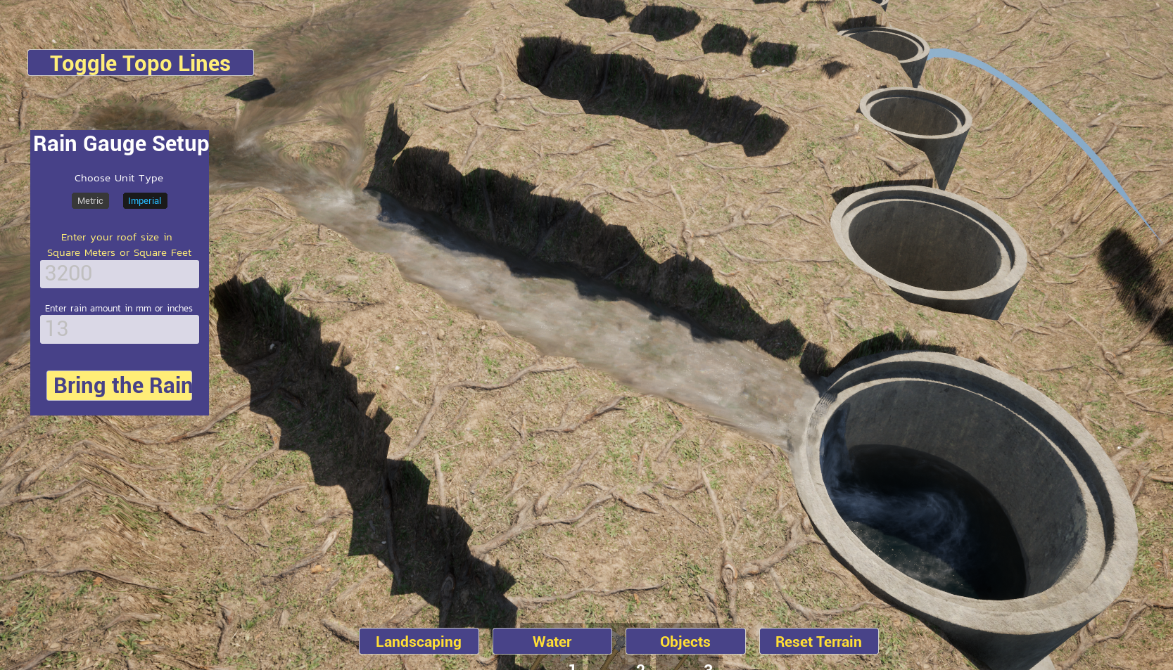 > Eventually I want players to be able to get an understanding of how planning with zones, waiting a year, using topography and collecting water helps them make a better design.