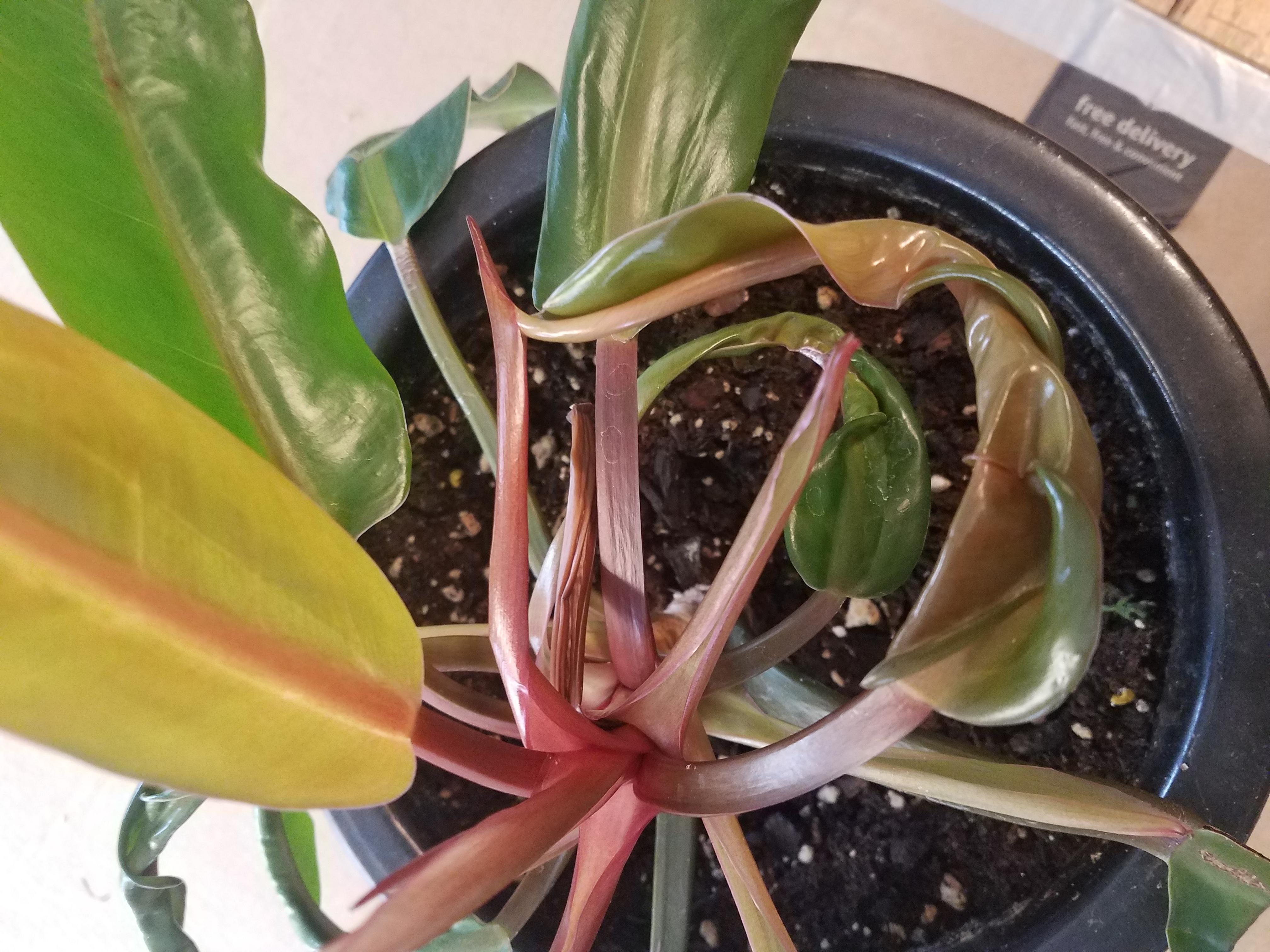 The leaves of syngonium or arrowhead plant grow in a similar way but not as dramatic as this one. Many of the popular houseplants are from the family of Araceae: philodendron, pothos, peace Lily, ZZ plant, caladium, anthurium etc. So you may expect the philodendron inflorescence to share similarity to that of peace Lily or anthurium but less showy.