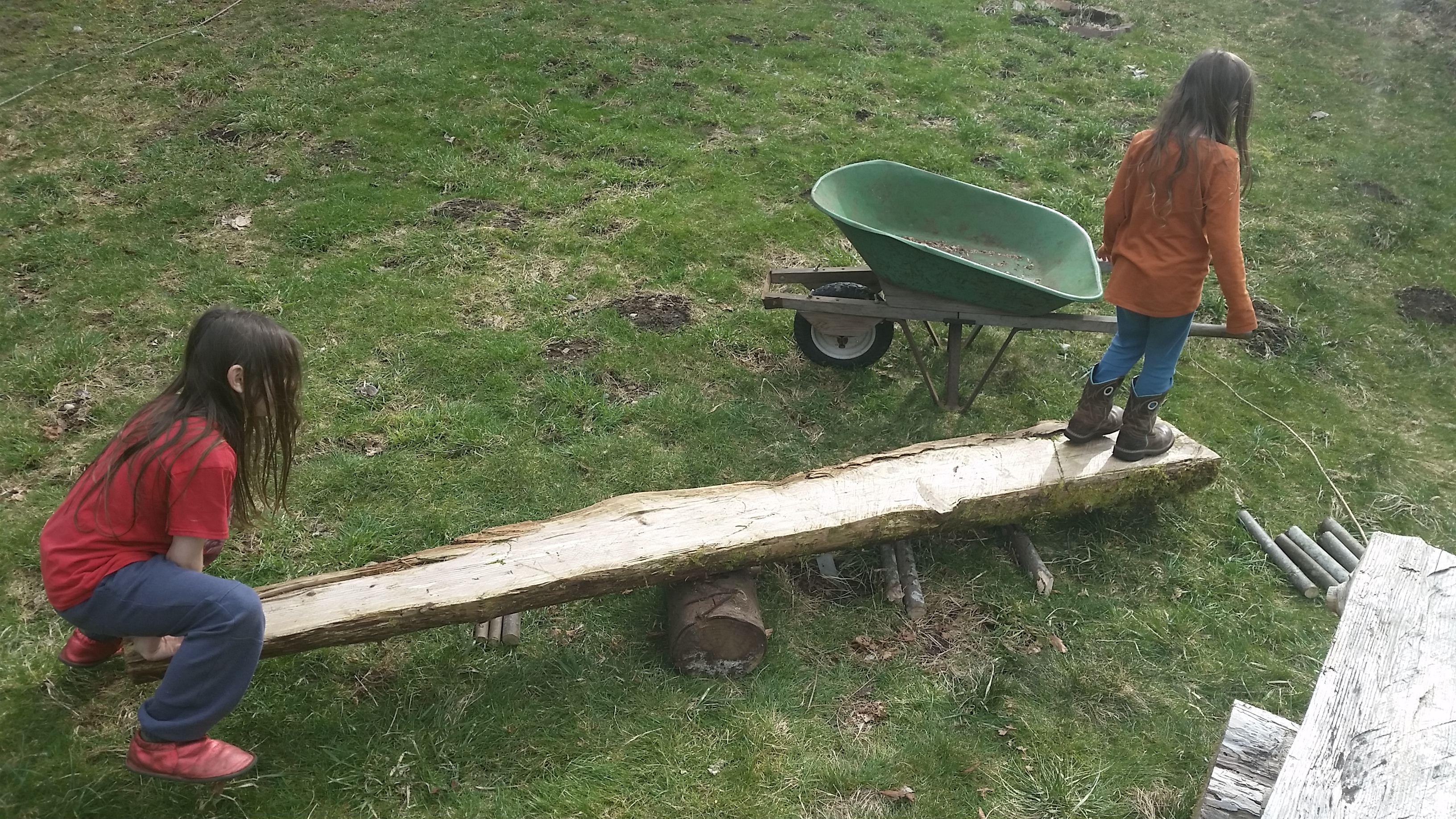 I *really* like that you made it long enough and low enough that this could be done. I hated teetertotters as a child because I was so light weight and didn't understand the physics of them, that I simply found I couldn't use them with anyone. The ones I remember were high enough off the ground that even trying to use them was a frustrating, jarring, accident waiting to happen.They loved being able to walk back and forth on it to change who was up and who was down based on leverage.