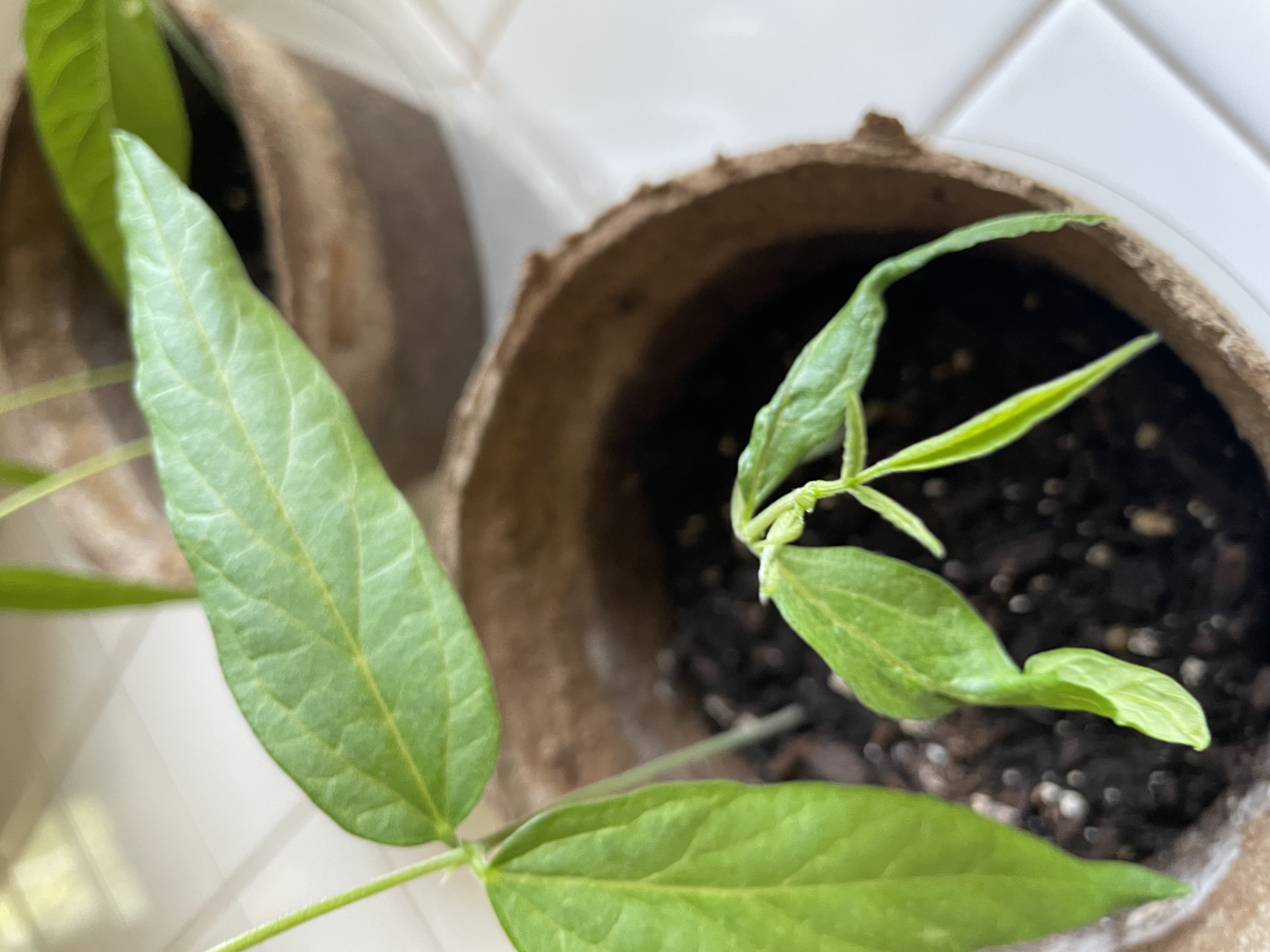 I was so excited to see my pigeon pea seeds sprout and grow . Had to start them in the house because the weather suddenly turned cold and I wanted them to be ready.