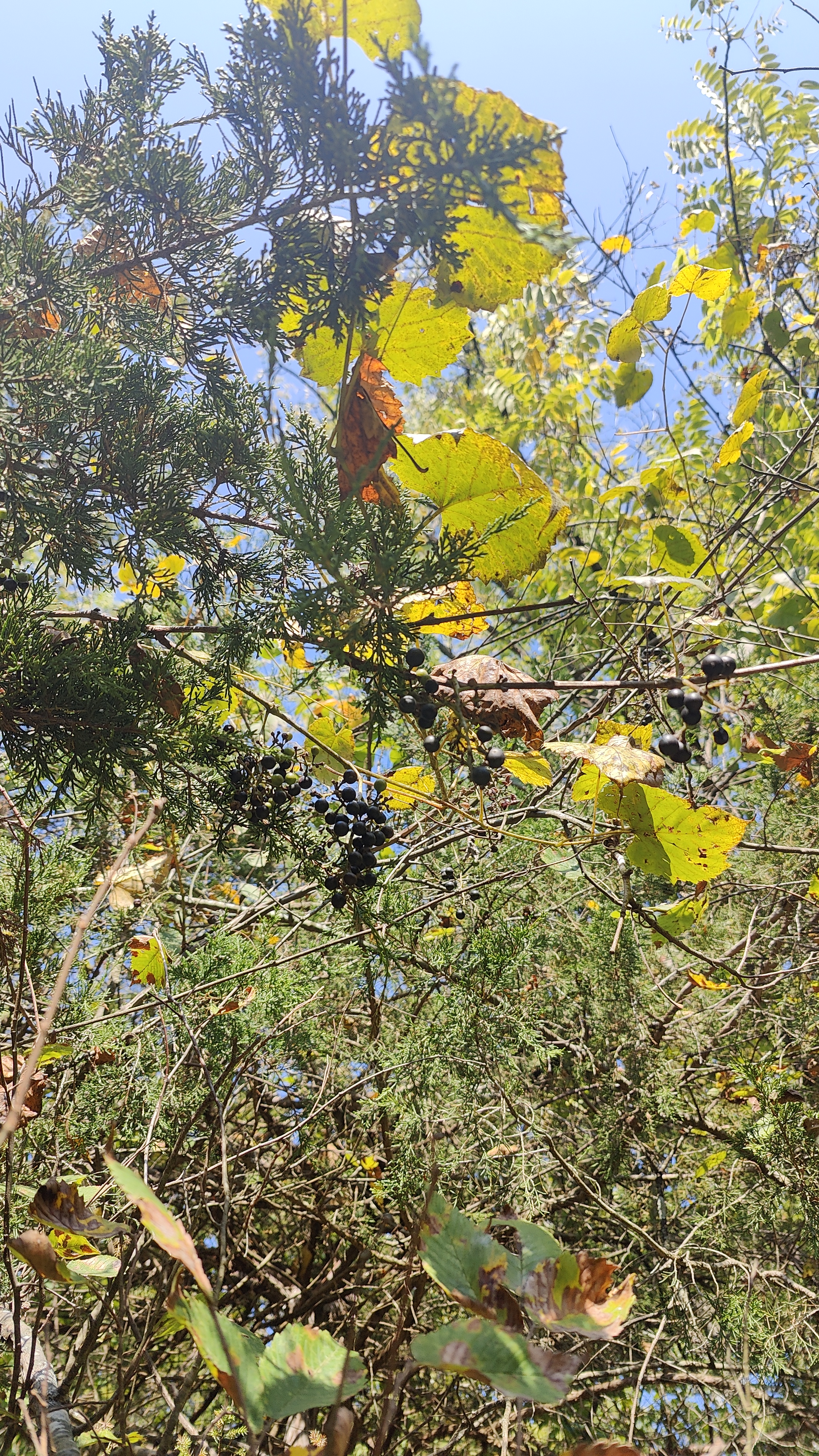 I foraged my first ever wild grapes today. It was so exciting to look up and realize there's little bunches of grapes above me! I am not 100% positive of the variety but I believe it's frost grape. Maybe someone can verify that. I also attempted to forage Greenbrier berries but upon retrieval they weren't ripe. What types of grapes did you forage and how were they?