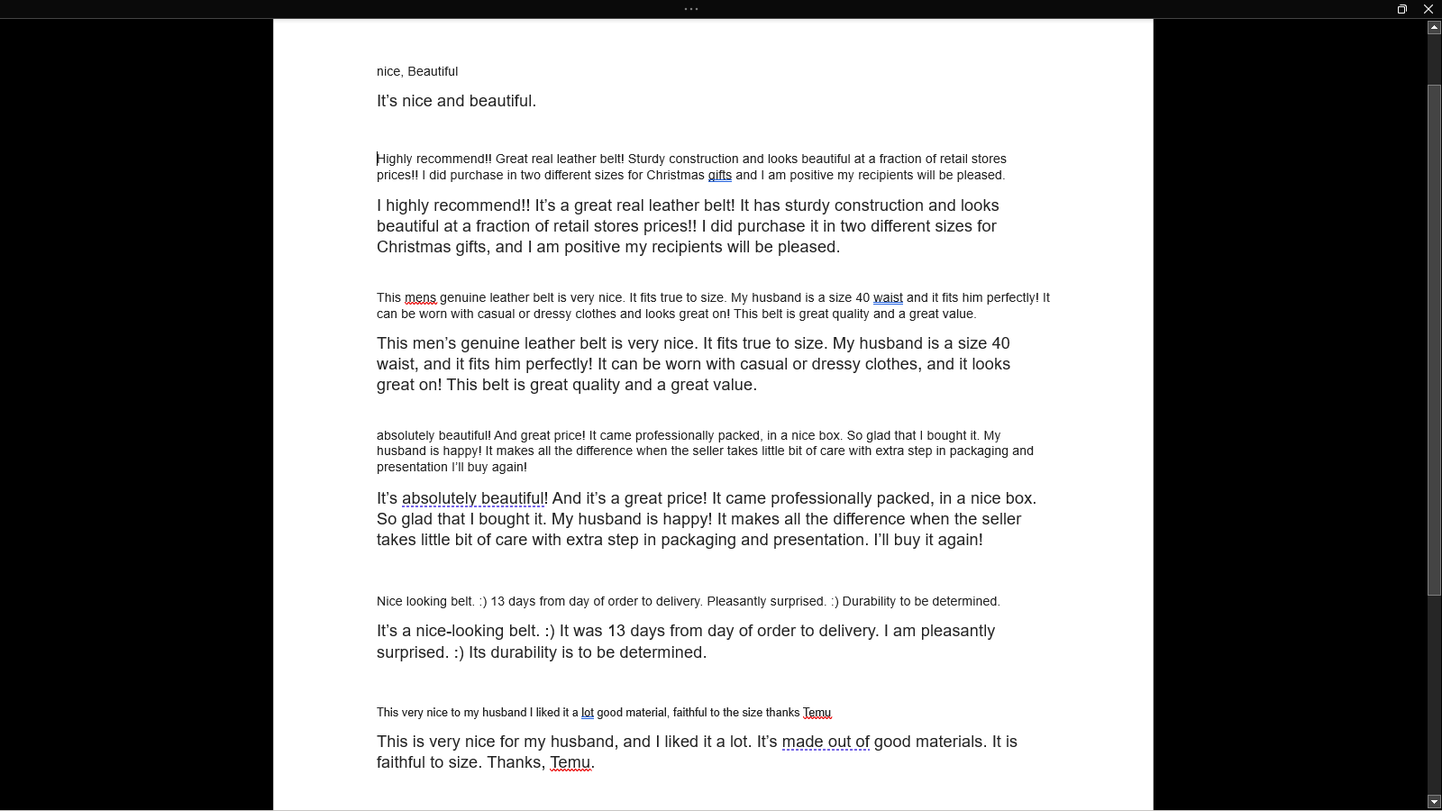I like this idea of proof-reading things on the internet. In school, we proof-read each other's papers, which made us all feel awkward and often embarrassed. But, online reviews and other AI/translated/sloppy writing is ripe for proof-reading, and no one ends up feeling bad!