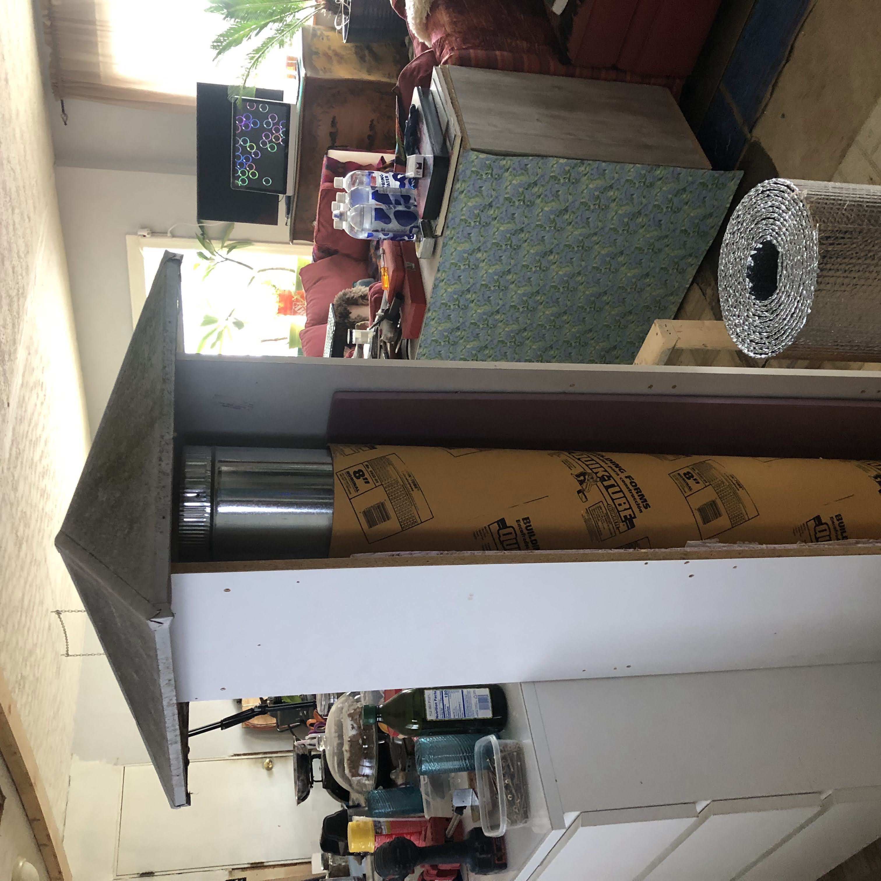 As with so many places in the country right now, it's bloody cold and windy outside. My layout has the exhaust going through an outside wall and then going up alongside the house. When its warm enough for things to dry and cure, I plan to do a poured in place chimney of aircrete that will then have some decorative finish on it (rocks most likely). In the meantime, I think I've come up with a way to insulate the outside pipe against the cold and wind with materials I have and can disassemble later? What do you think?