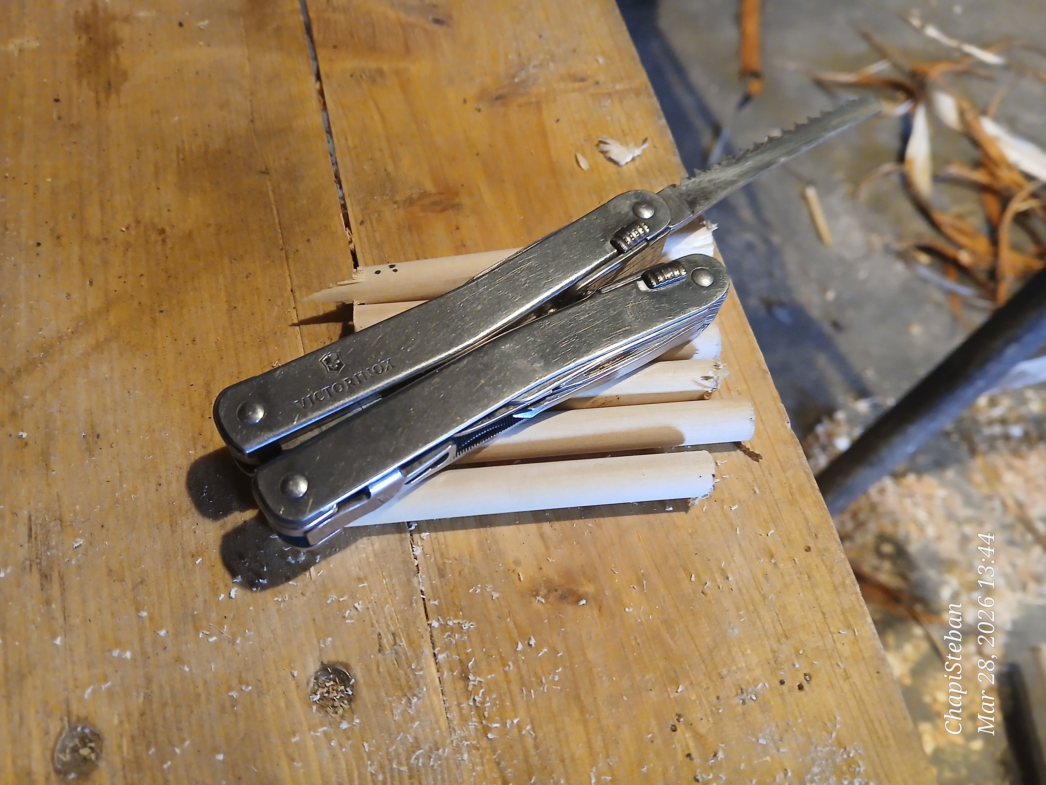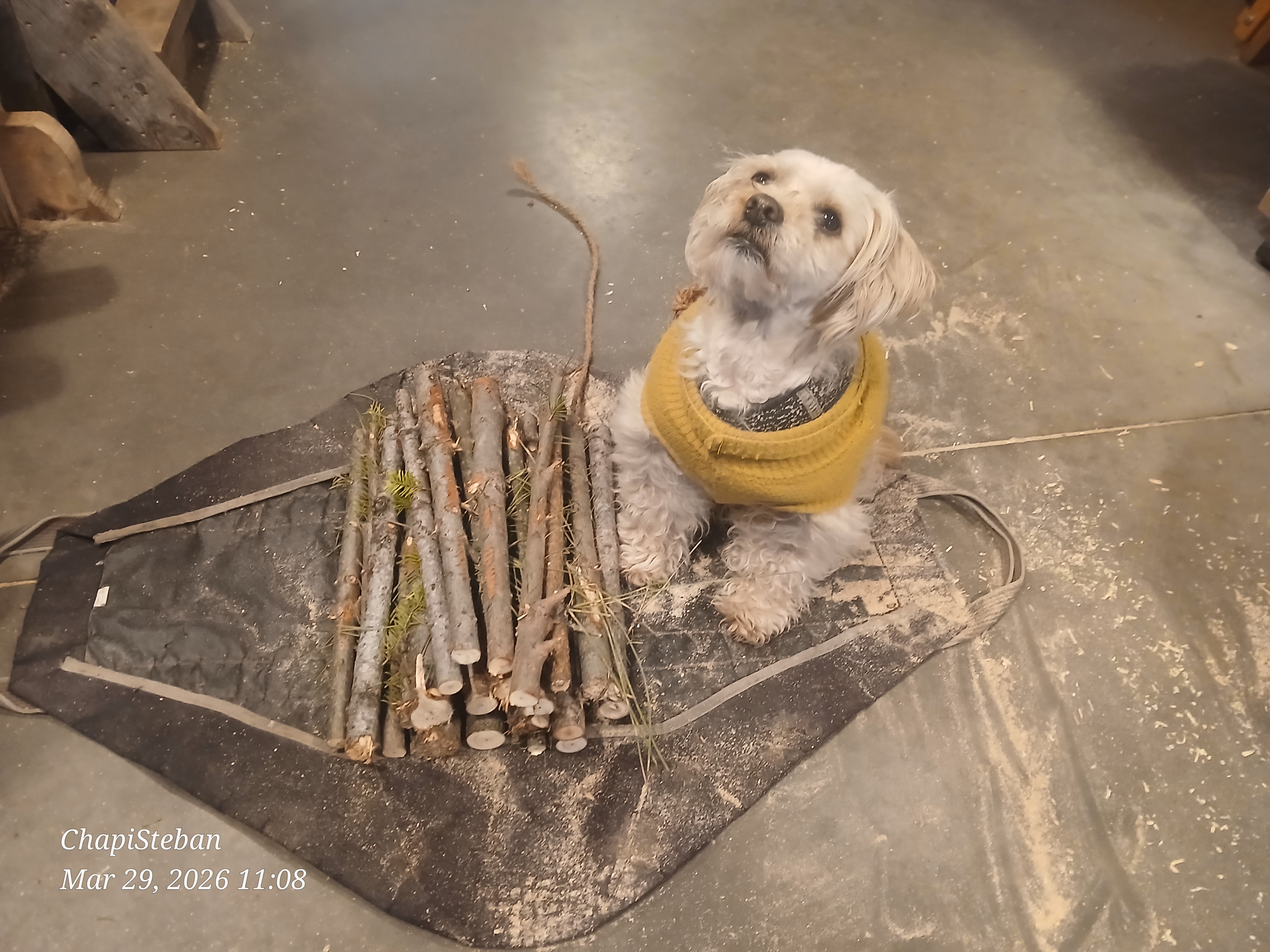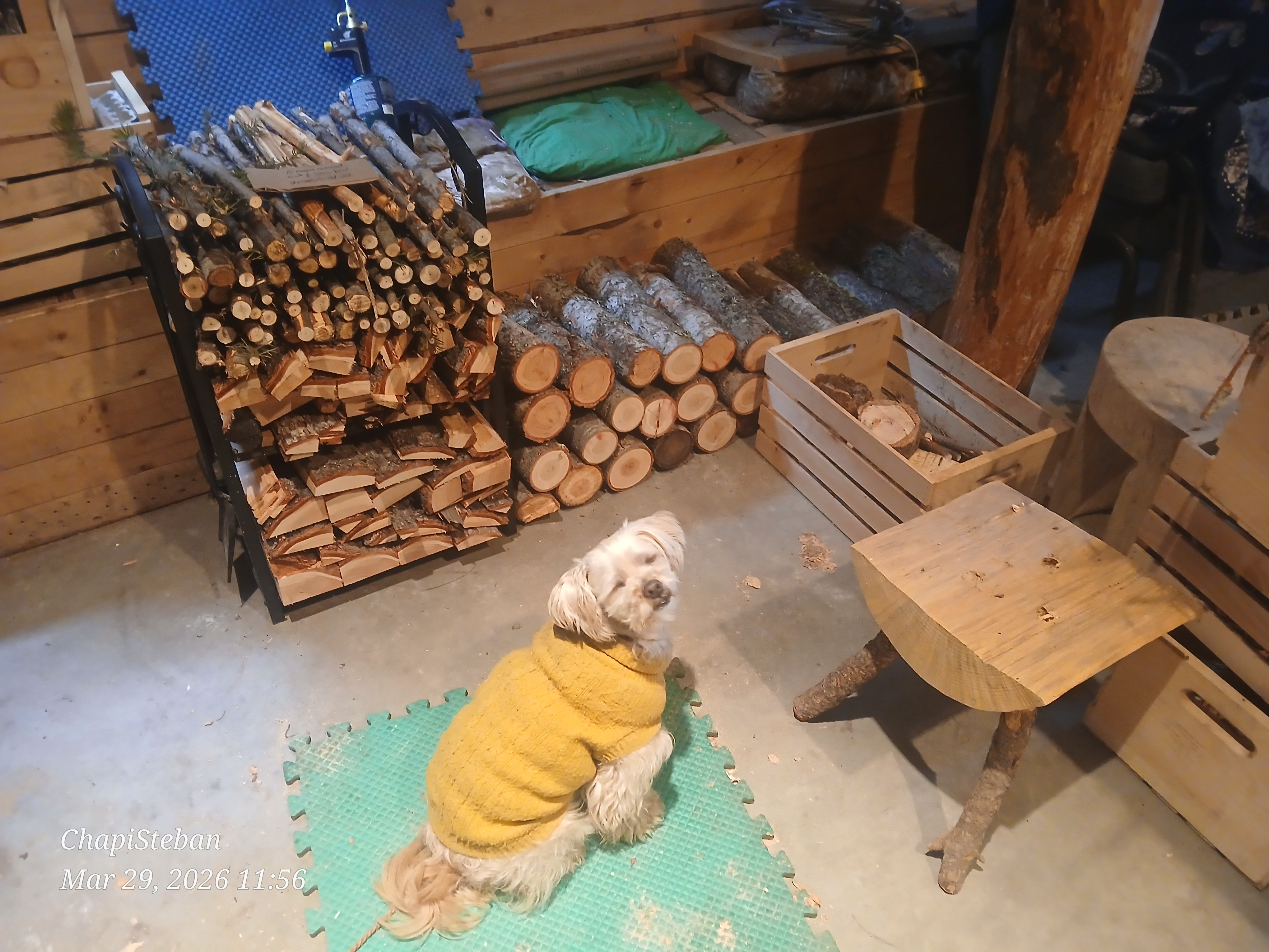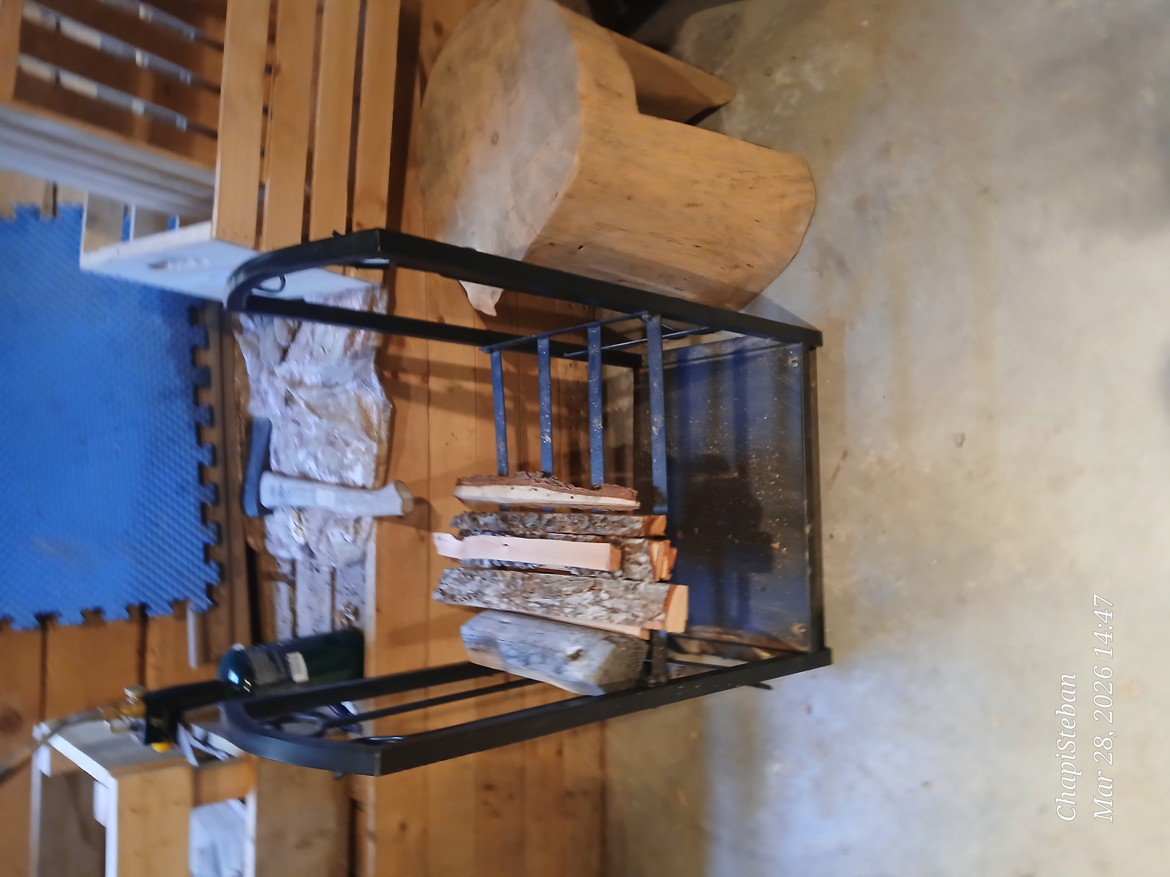 All that processing paid off—I completely filled up the classroom’s firewood rack, stacking it full and leaving the smaller pieces neatly beside it. Nothing wasted, everything with a purpose.
