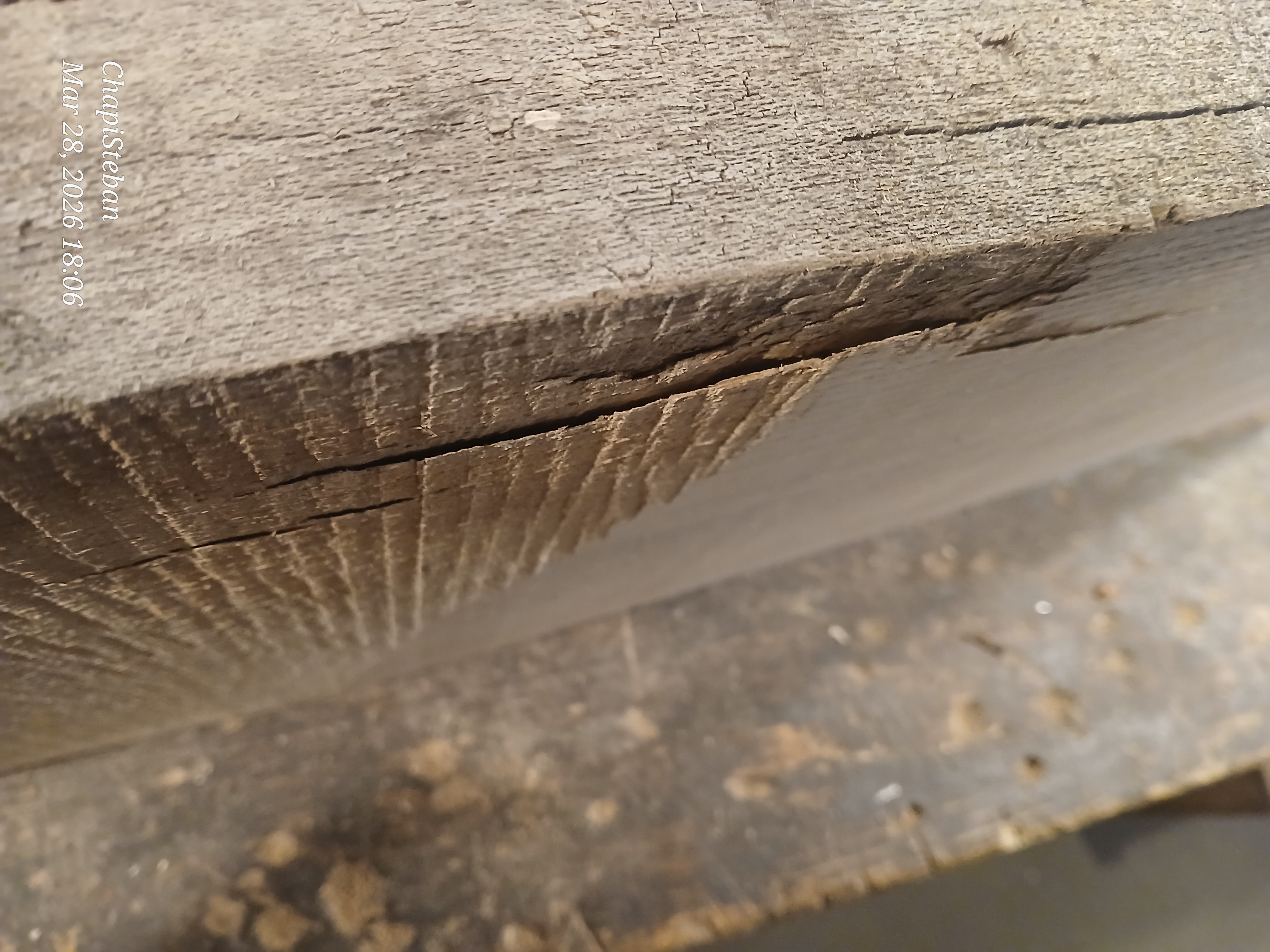 I decided to go back over the wooden gate and drawbore every connection point—tightening things up, making it stronger, more solid. Then I cut down and stacked scrap wood that had been brought over from the sawmill site, and finished up by sweeping the classroom.
