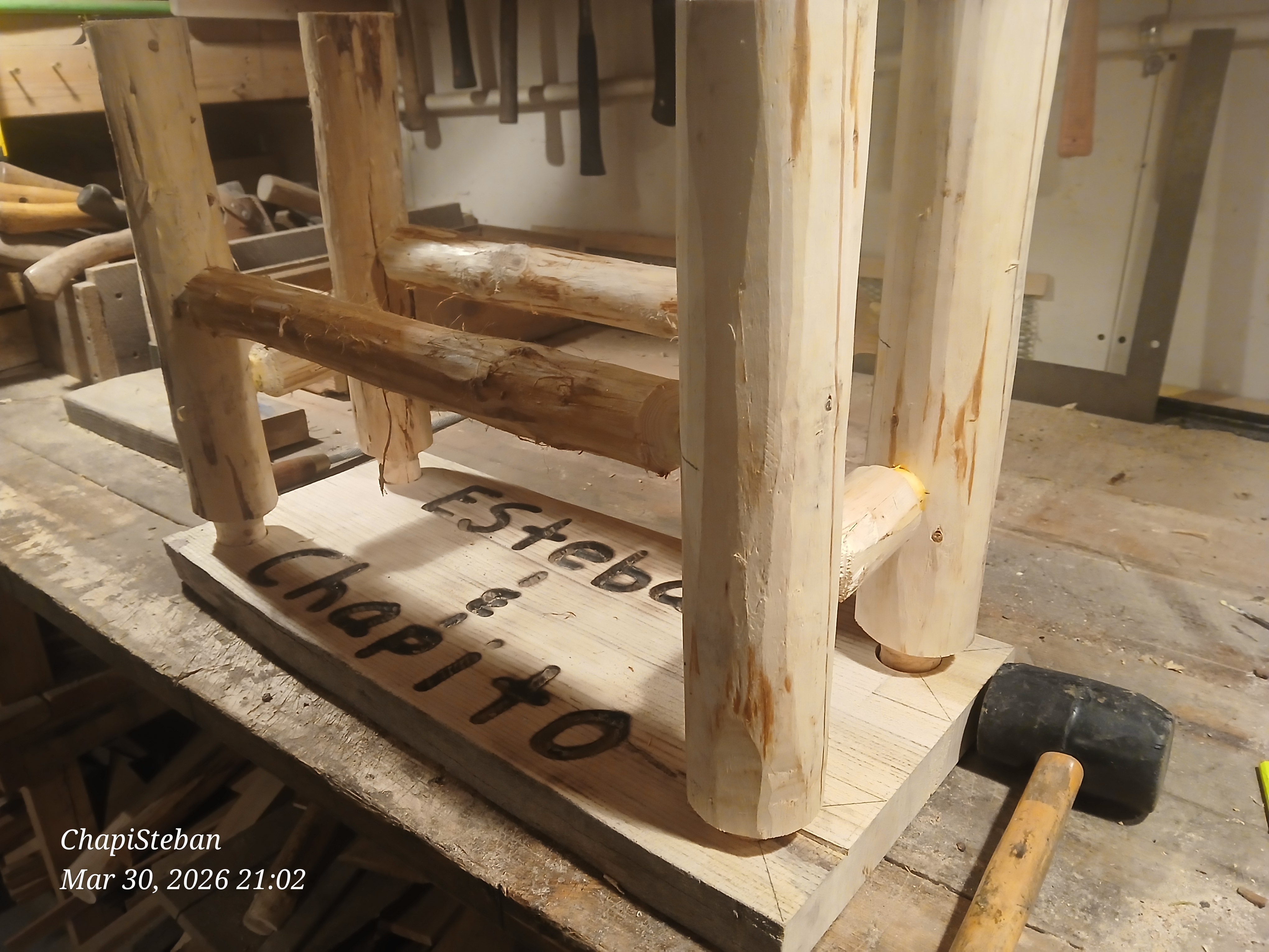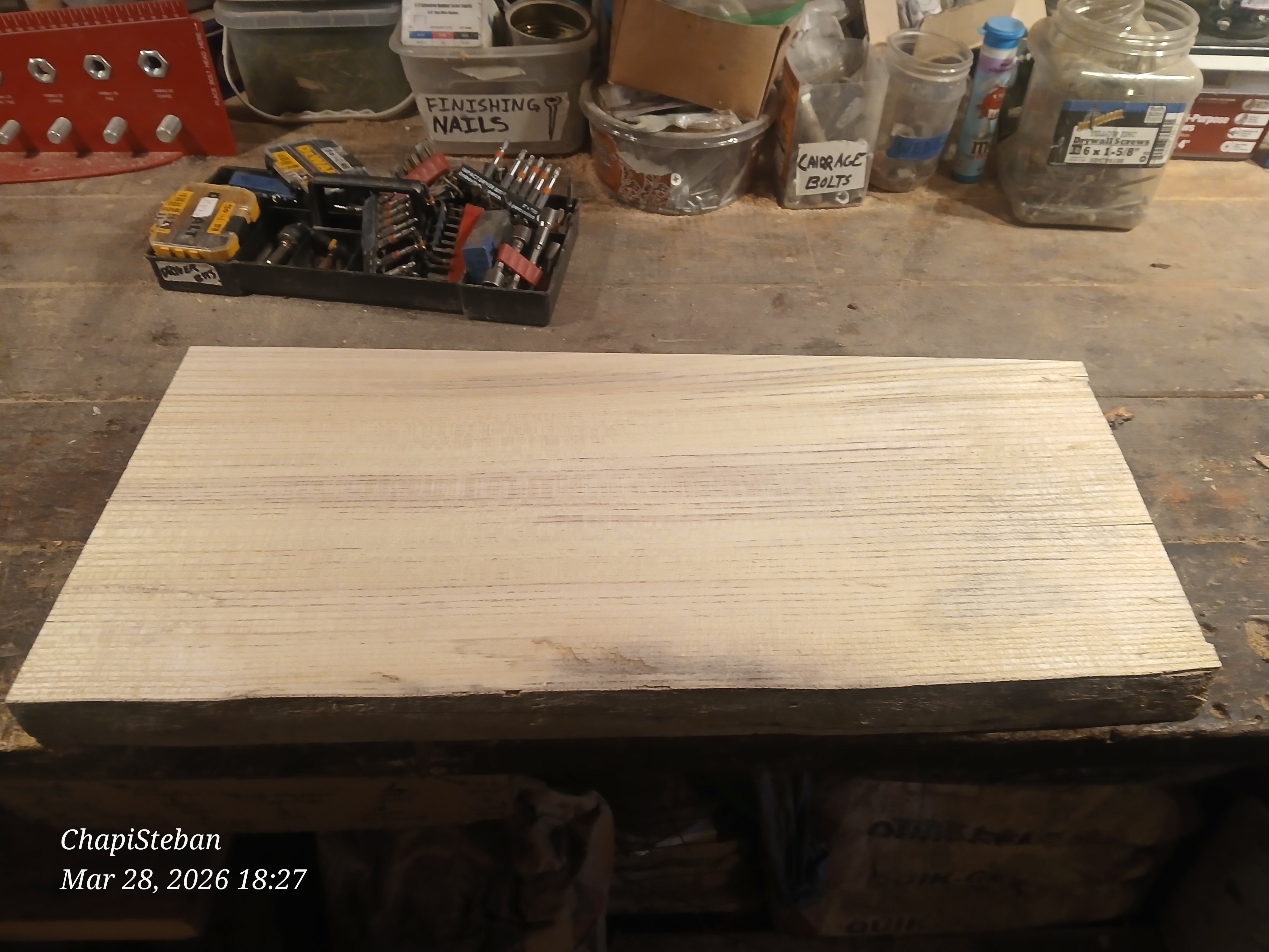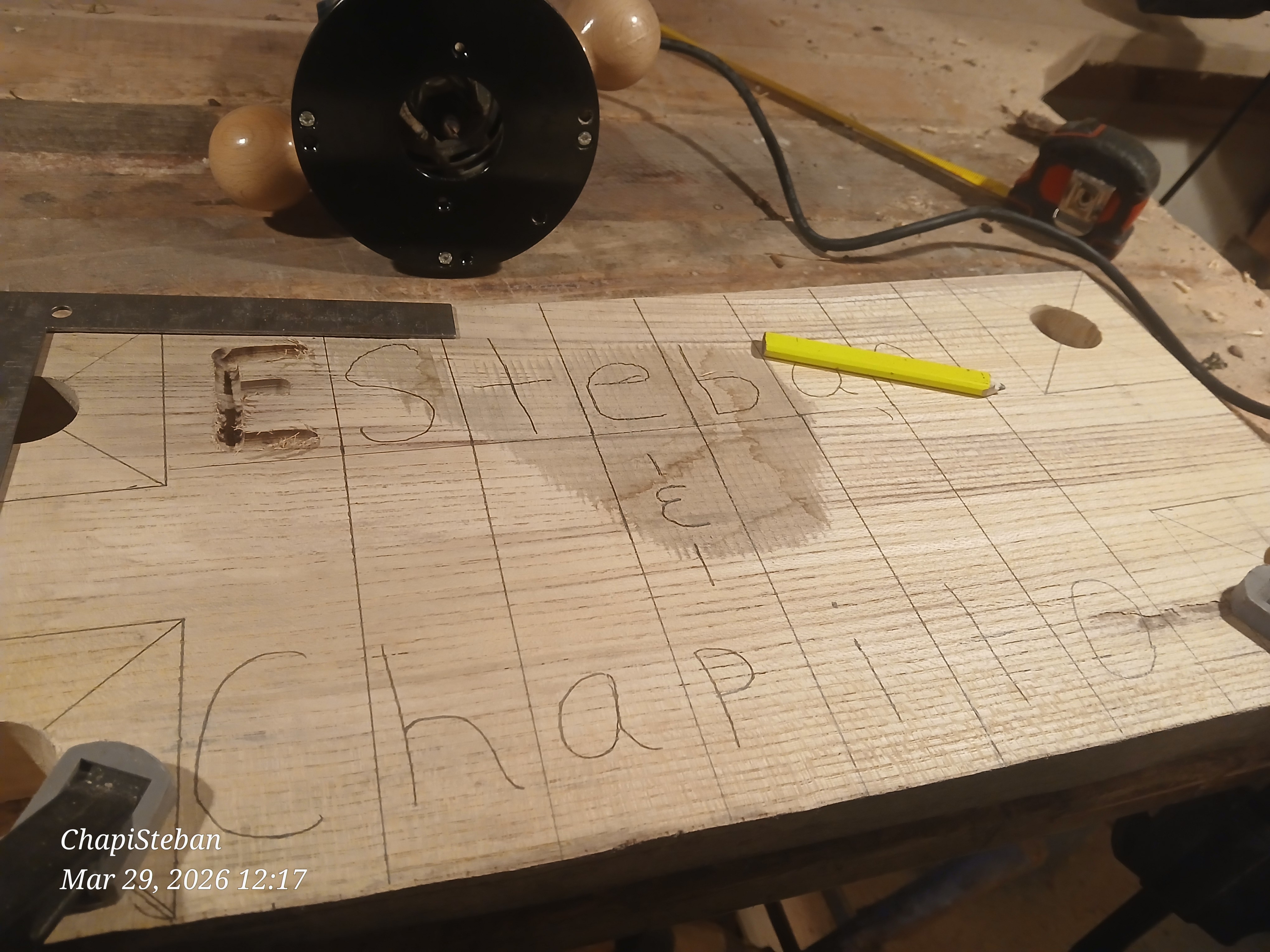 Tomorrow, I’ll come back to it—routing in my name, Chapito’s name, and the year, then burning it in with a hand torch before sanding it clean. After that, I’ll move on to shaping the legs and figuring out the supports.