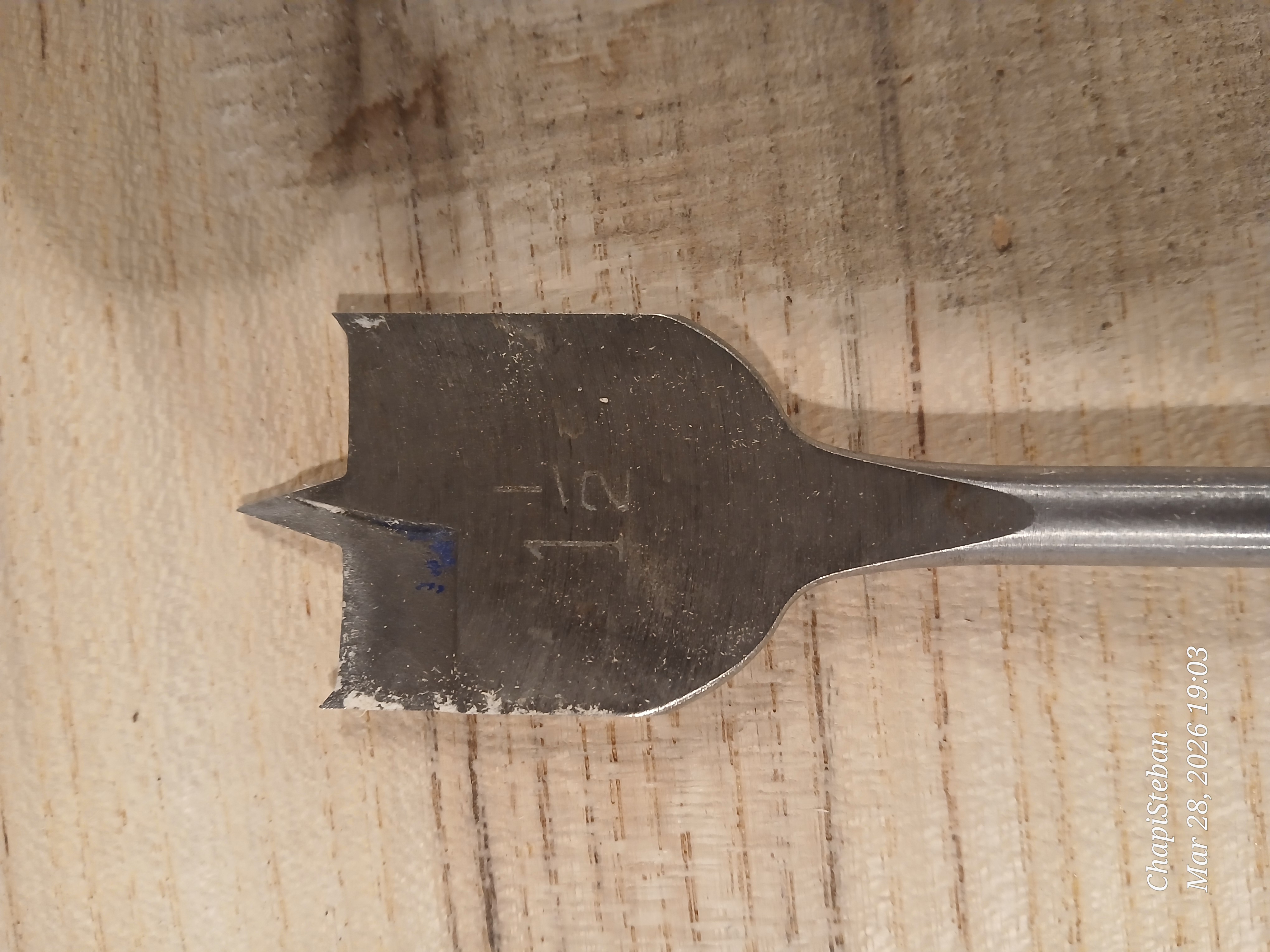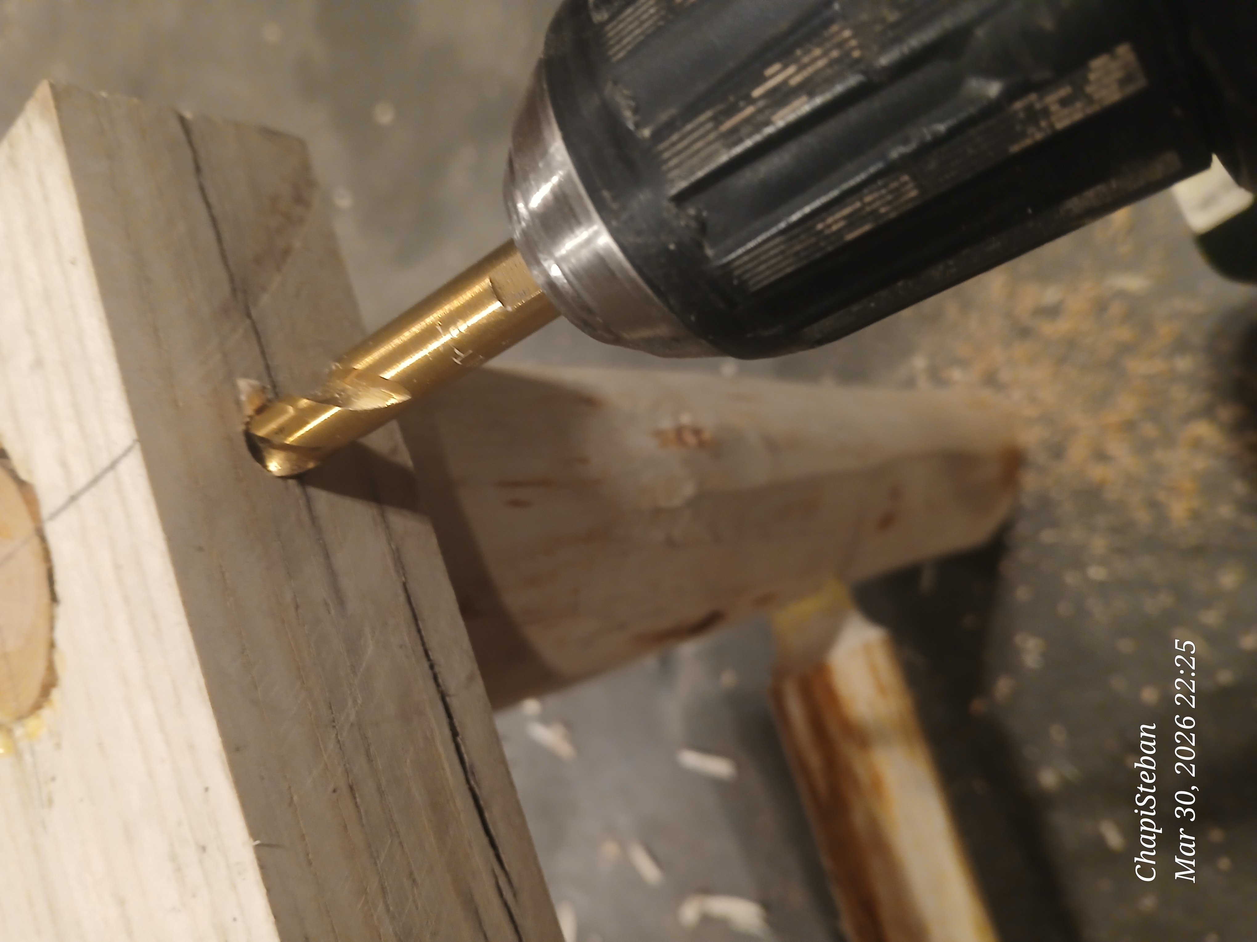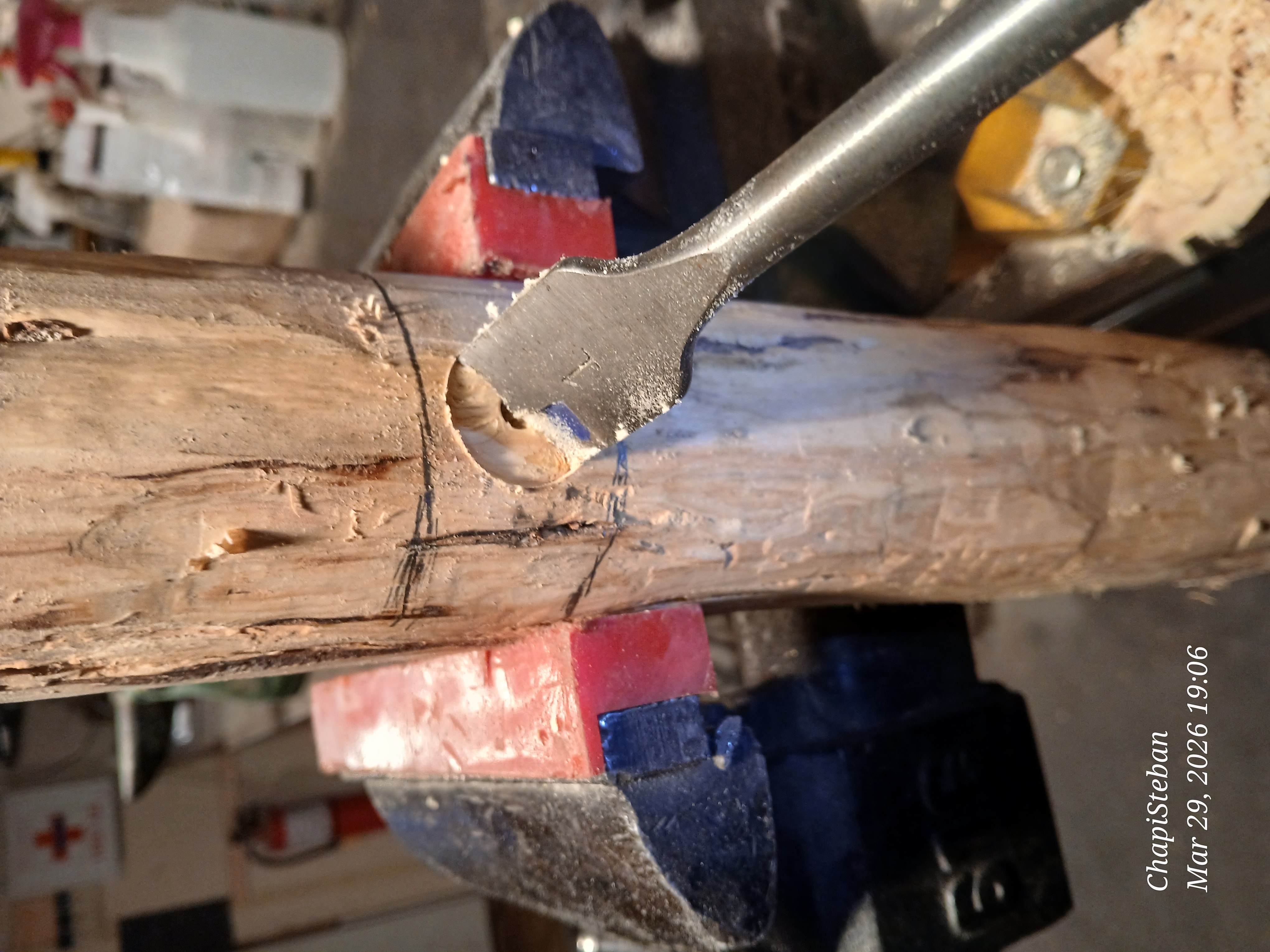 Then we bore a hole on it ... also drilling through the other side for drainage ...