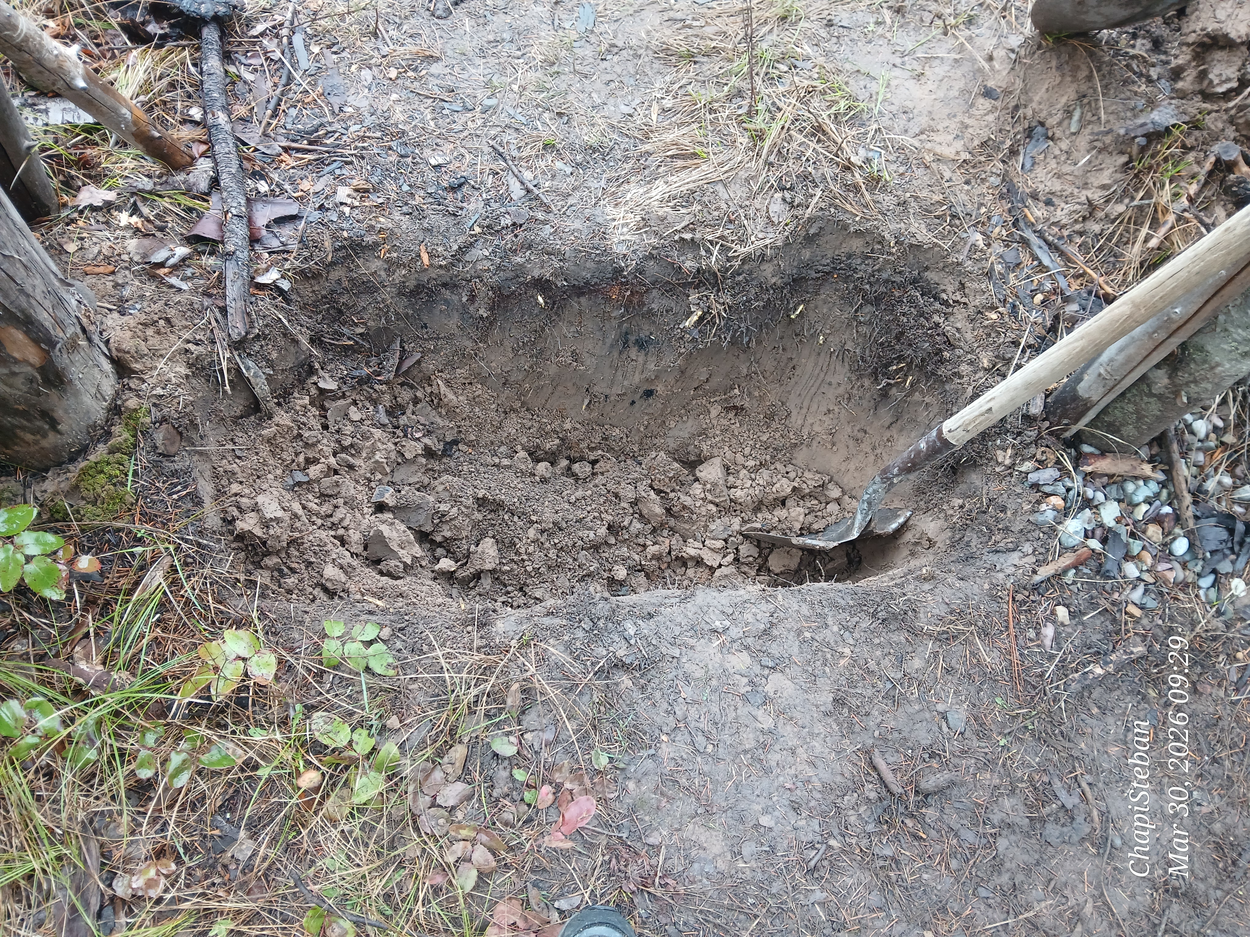 Footer hole dugged out ... will be laying 3" of gravel for the foundation