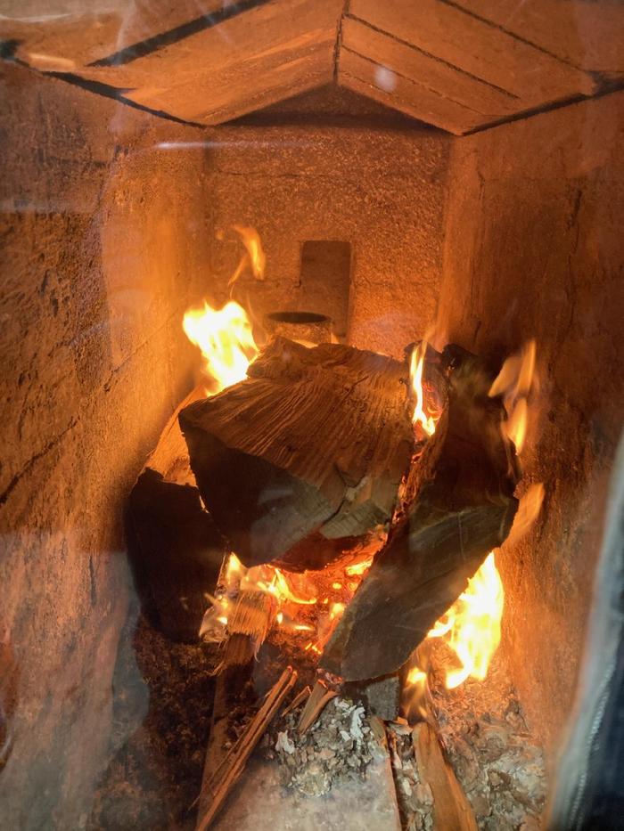 RMH, thank you. Here is mine in action at this very moment. Fire burning sideways, heating up my cast iron cook top where I am heating water in my iron teapot from Japan, purple sweet potatoes in a cast iron skillet handed down from family, and soup in a stainless pot, under which I placed canning rings so the pot isn’t ruined on the hot, hot, cooktop. I love my RMH!