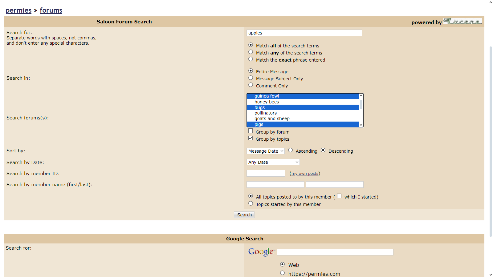 Mike Barkley wrote:I find the permies advanced search tool very useful once you play with it a while to learn how it works.