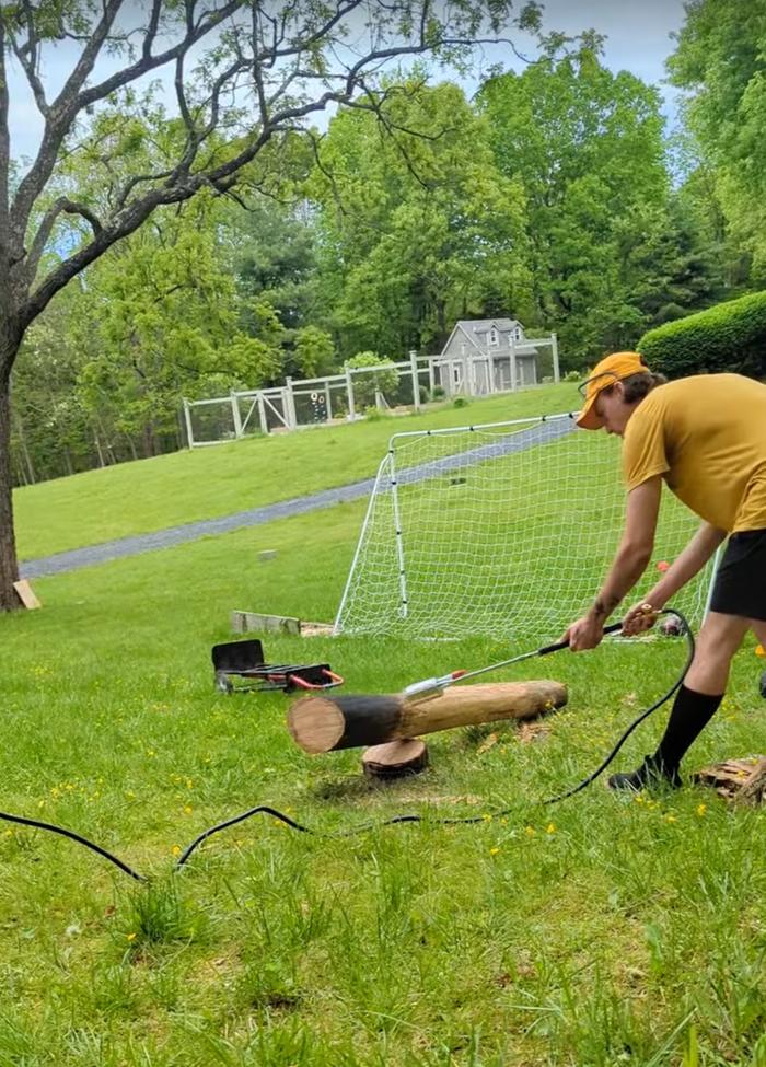 One fun use for the logs is to make a teeter-totter out of a log and a carved log for its balancing point. My kids really like walking down it, and they've incorporated it into their obstacle course. My kids love playing "the ground is lava" and trying to go from one equipment to another without touching the ground. It's a pretty easy thing to facilitate, too, if you have logs and rounds to walk and jump on!