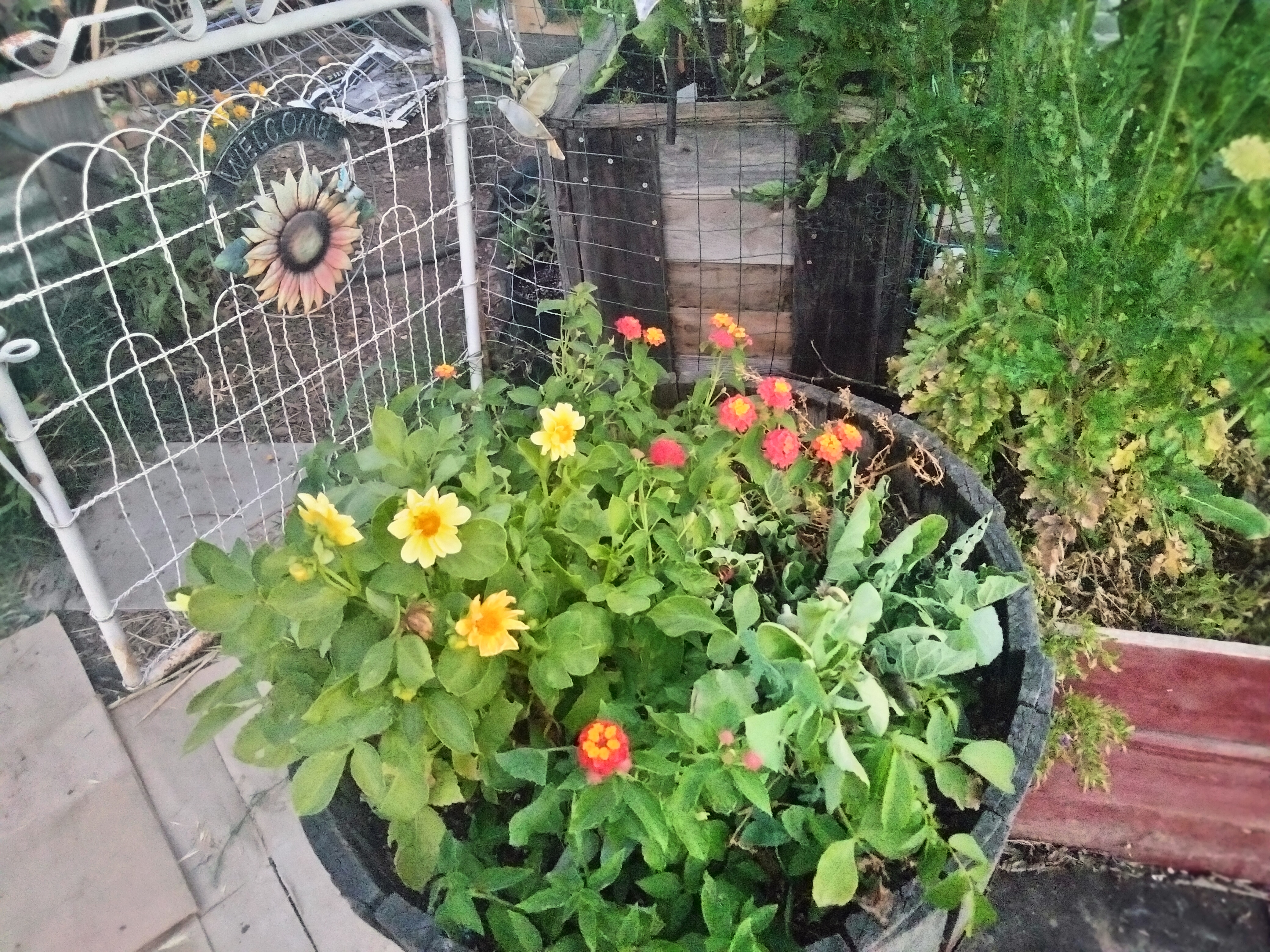 Jen Fulkerson wrote:The raised bed I make from old redwood fence boards, and some old corrugated steel panels. It's about two feet tall. In it I'm growing cosmos, cucumber, a pepper, bush beans, a white eggplant, and calendula. The garden is doing well so far. We have already eaten a cucumber, and peppers, and there's an eggplant almost ready from this bed.
