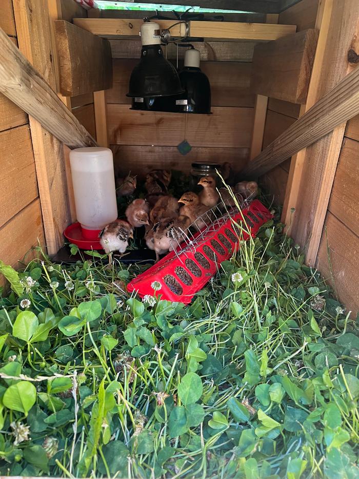 -> I’m thinking low voltage heat emitter pads as a hover brooder, set up in a wool hen