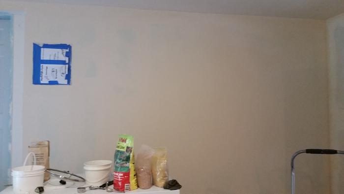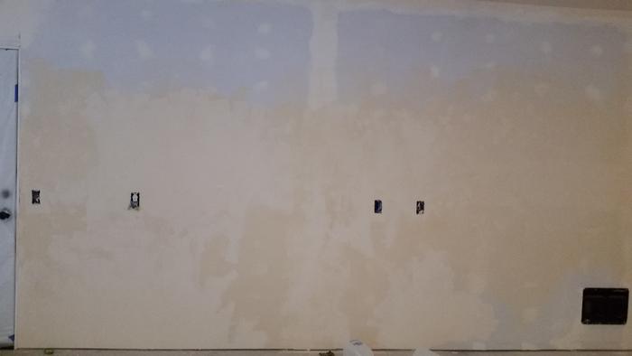 I forgot, but we did end up sanding our latex wall. Since there were a lot of dings and bad taping done on it, we put a lot of drywall mud over it. Then my dad took a giant fancy sanding thing and sanded the whole wall. He was doing that to smooth out the drywall mud, but it also sanded the paint in the process!