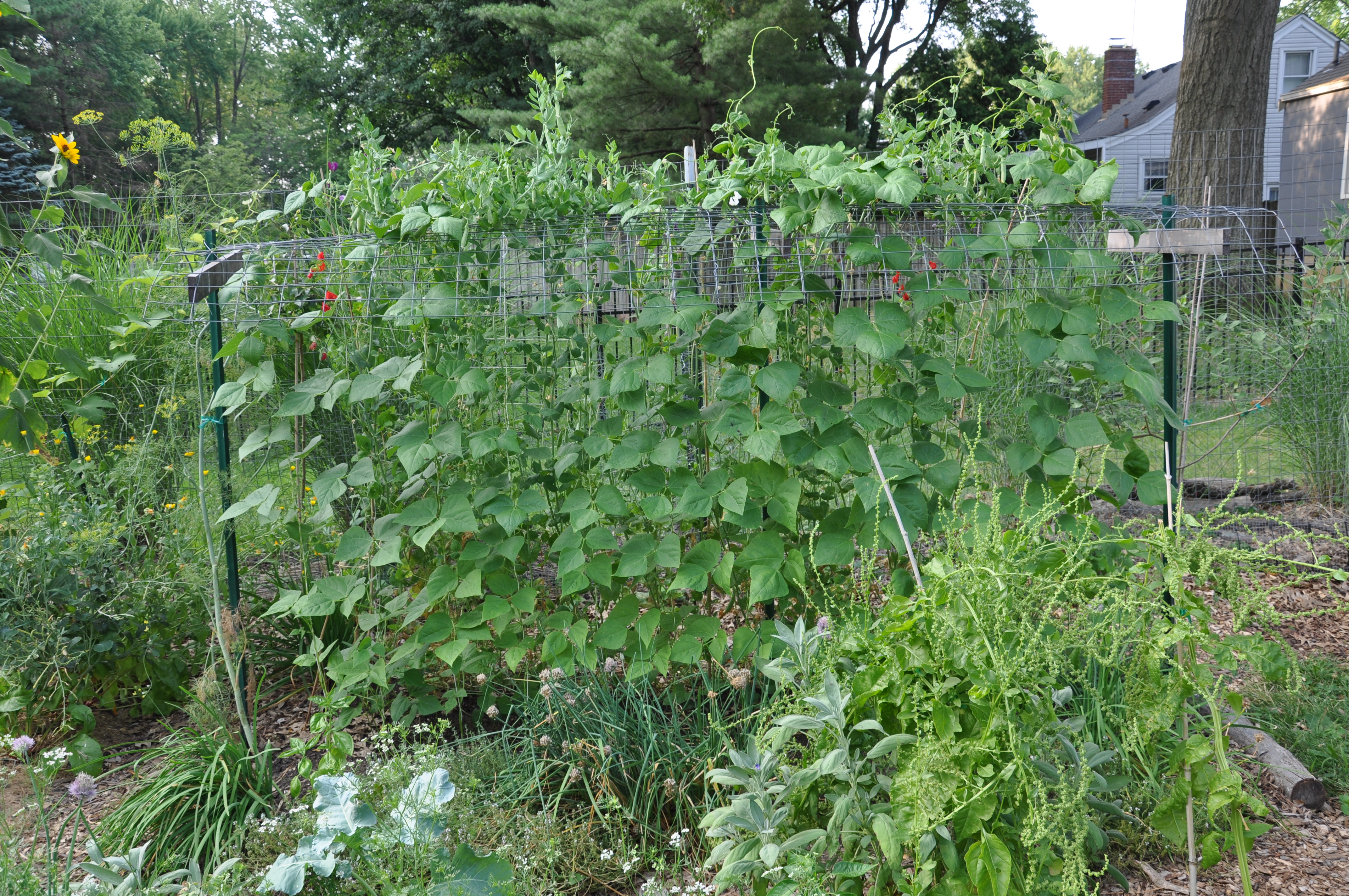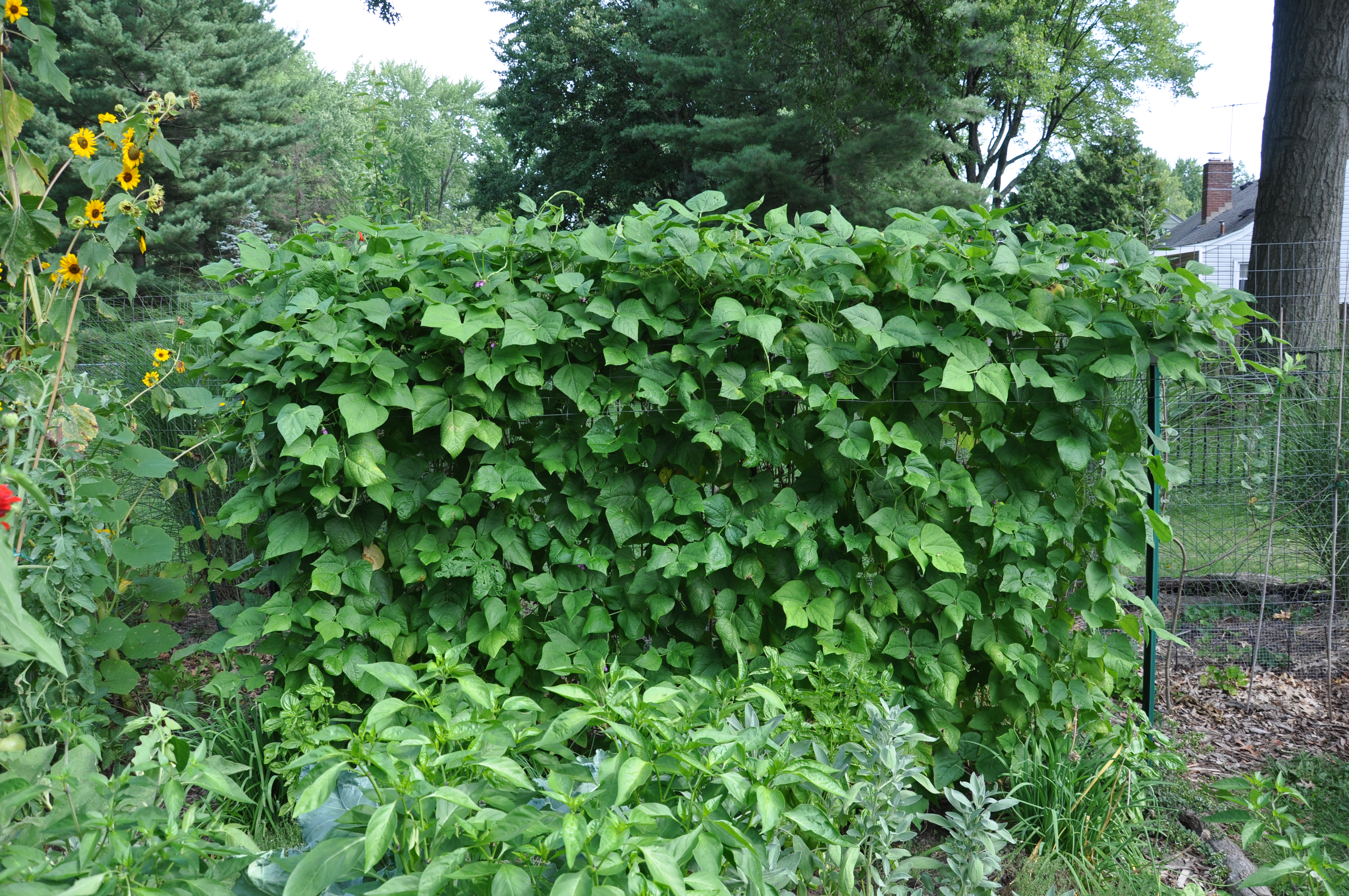 I also had a couple grow on the back side. I put bamboo by the beans and leaned it against the trellis, and this worked well also.
