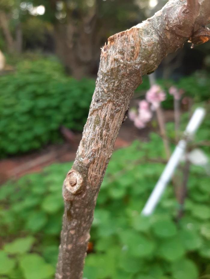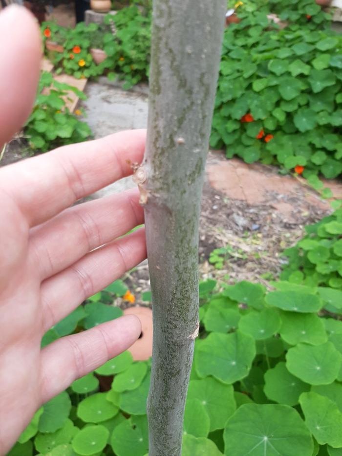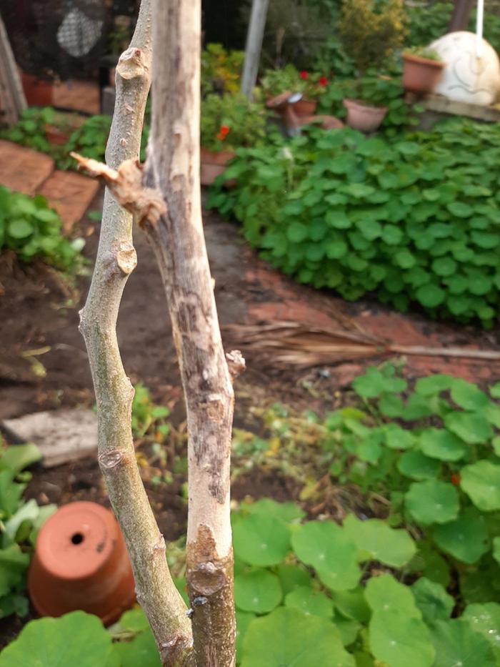 The main trunk is very pitted with damage - the newer one is not (so far)
