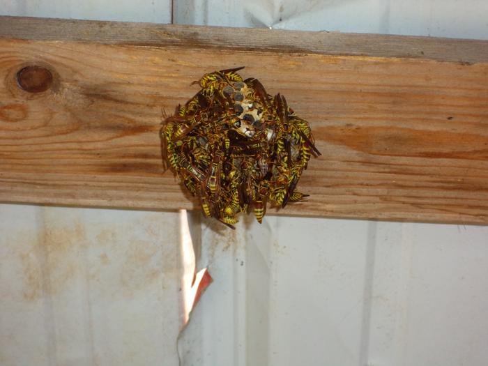 So, under my potting tables was a bad spot when I didn't see the nest. I was fine until I dropped something that shook the nest on a hot day ... got two stings on bare leg.