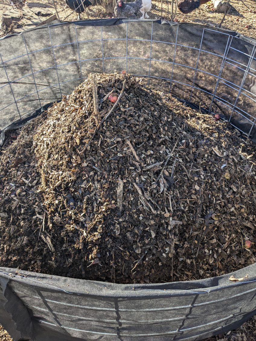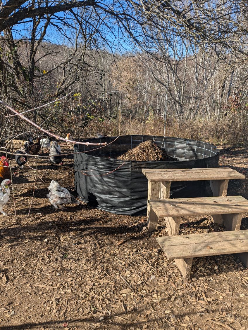 I've been thinking of trying this for awhile now. I want to get more useable compost from my chicken run. They are in a large area, so it doesn't really work well for composting, they just spread everything around and the ground gets hard. My thinking is that if I confine the compost material to a smaller area for them to work in I can harvest the compost more easily. I just built it, so it will be a bit before I see how well it works. I may make more rings nearby so I can occasionally flip the compost into a different ring and refill the first. The chicken run has a downhill slope so it's easy flipping.
