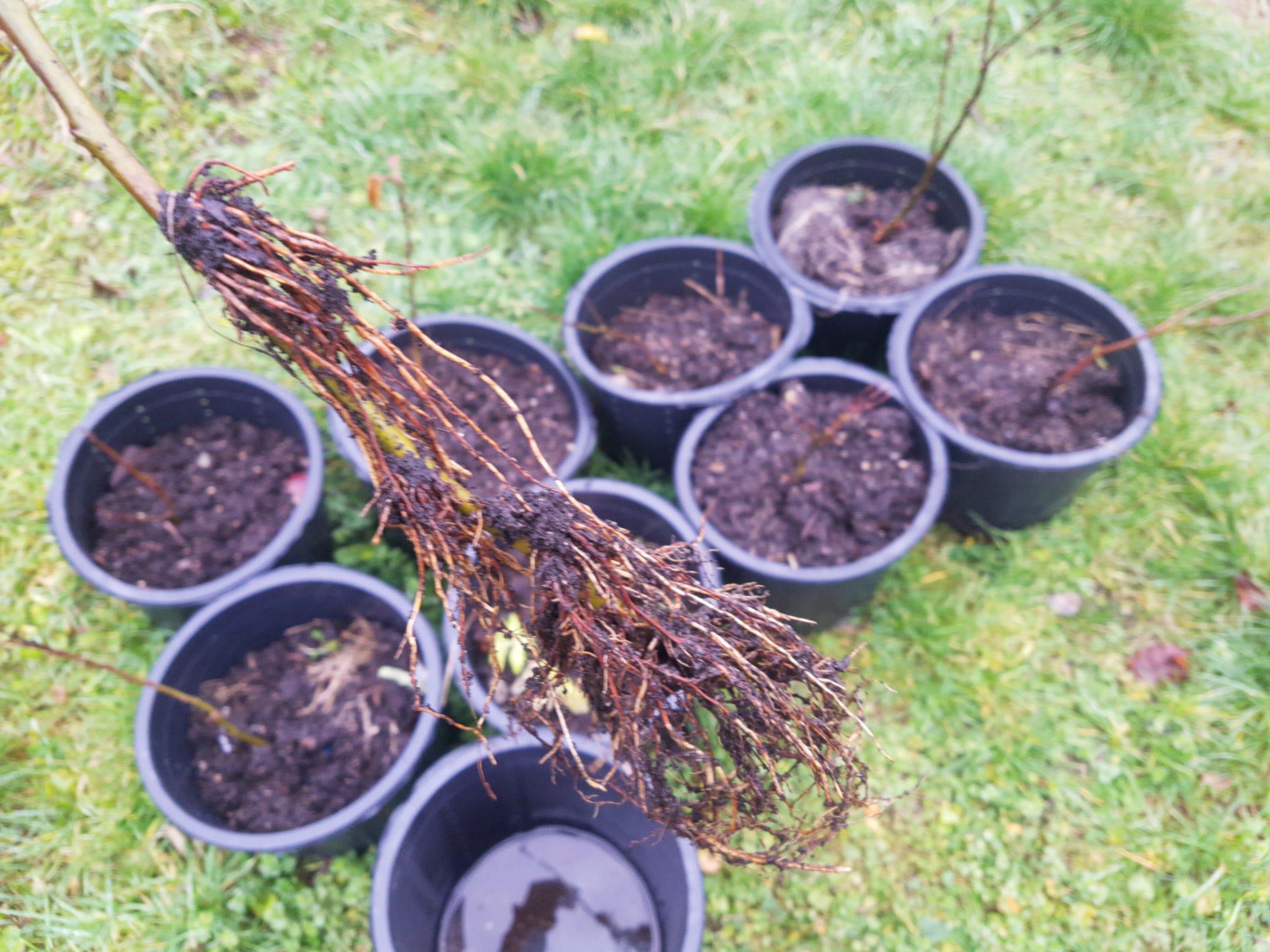 It got out of control, my rootstock apple trees went wild. It was really messy. I've bent down several branches and they rooted here, there and everywhere. I had to come in and rip it out by force. Anyway, 2 hours of work has led to 50 young trees ready to grow another year in my mini nursery or pots. The most decent ones went into pots, to root another season away from the mothertree. The weirder grown ones get a chance to fend for themselves close to a temporary filling water ditch which is partially shaded for a year, then they'll be put into foodhedges.