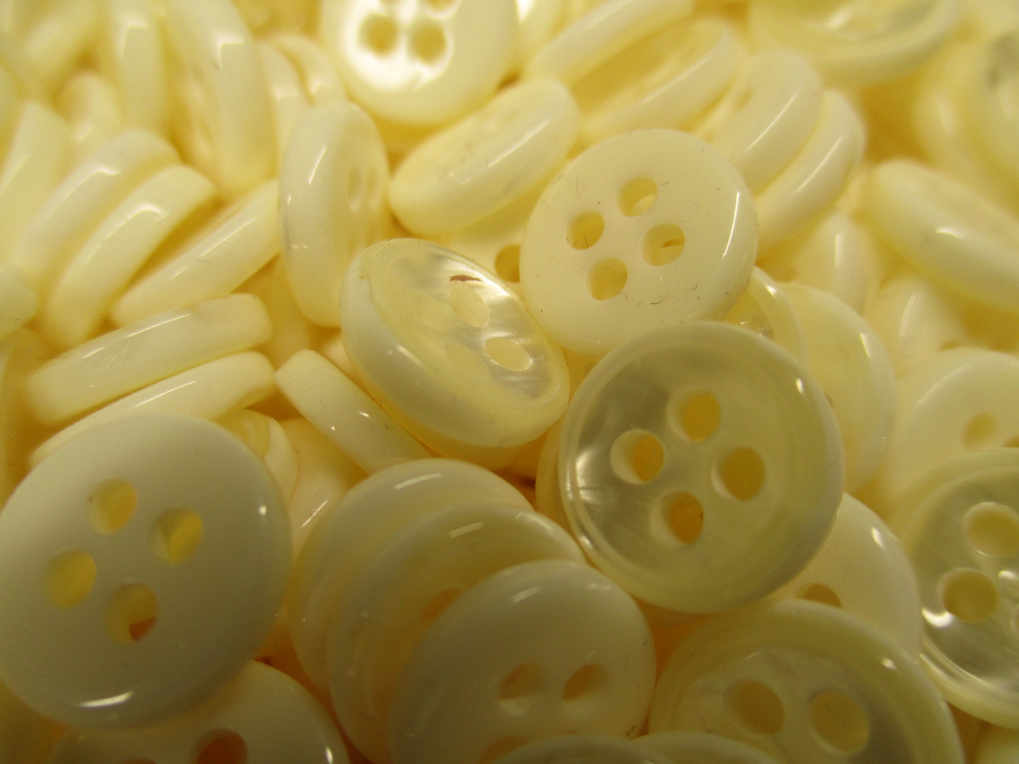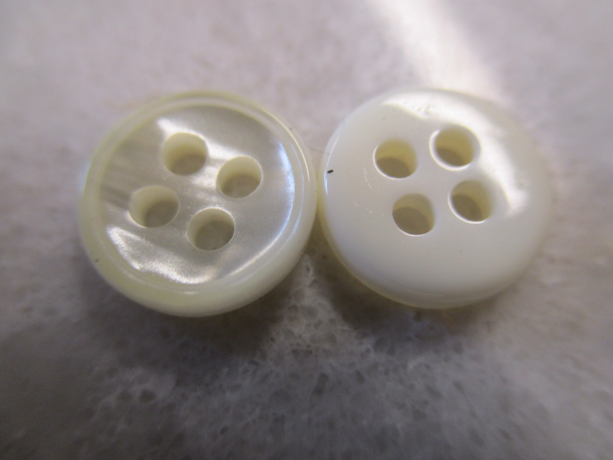 ranging between 10-14mm diameter and 1-2mm thick.  I do have some bigger diameters up to 1.5" too.   Mother of pearl, 2 tone, 2 hole, 4 hole, shank buttons, etc.  Alot are Namm Singer.