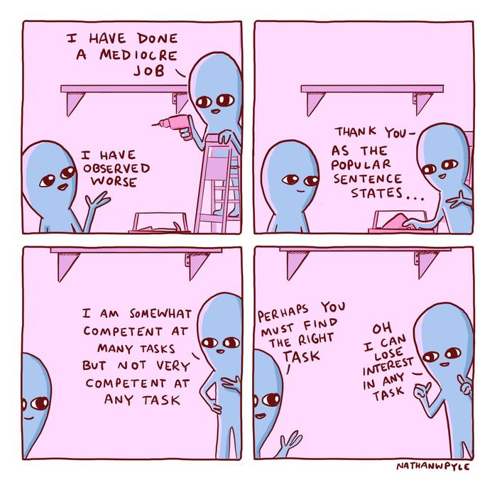 Anyway, I got to thinking about this because I just saw this comic playing with the idiom "jack of all trades, master of none":