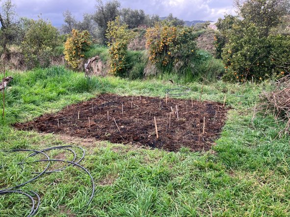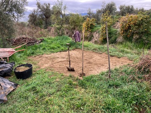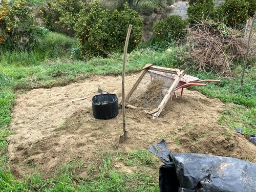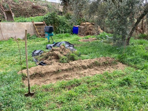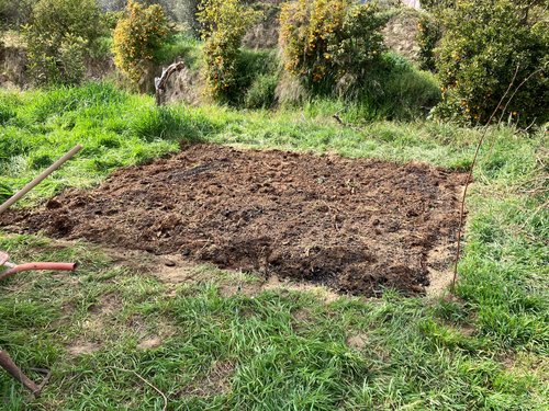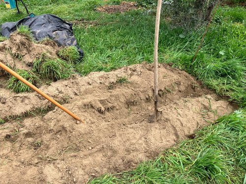 Did a double dig, that is remove the grass, dig one step further down, throw the grass roots up in the ditch and cover with the soil that was dig #2 before.