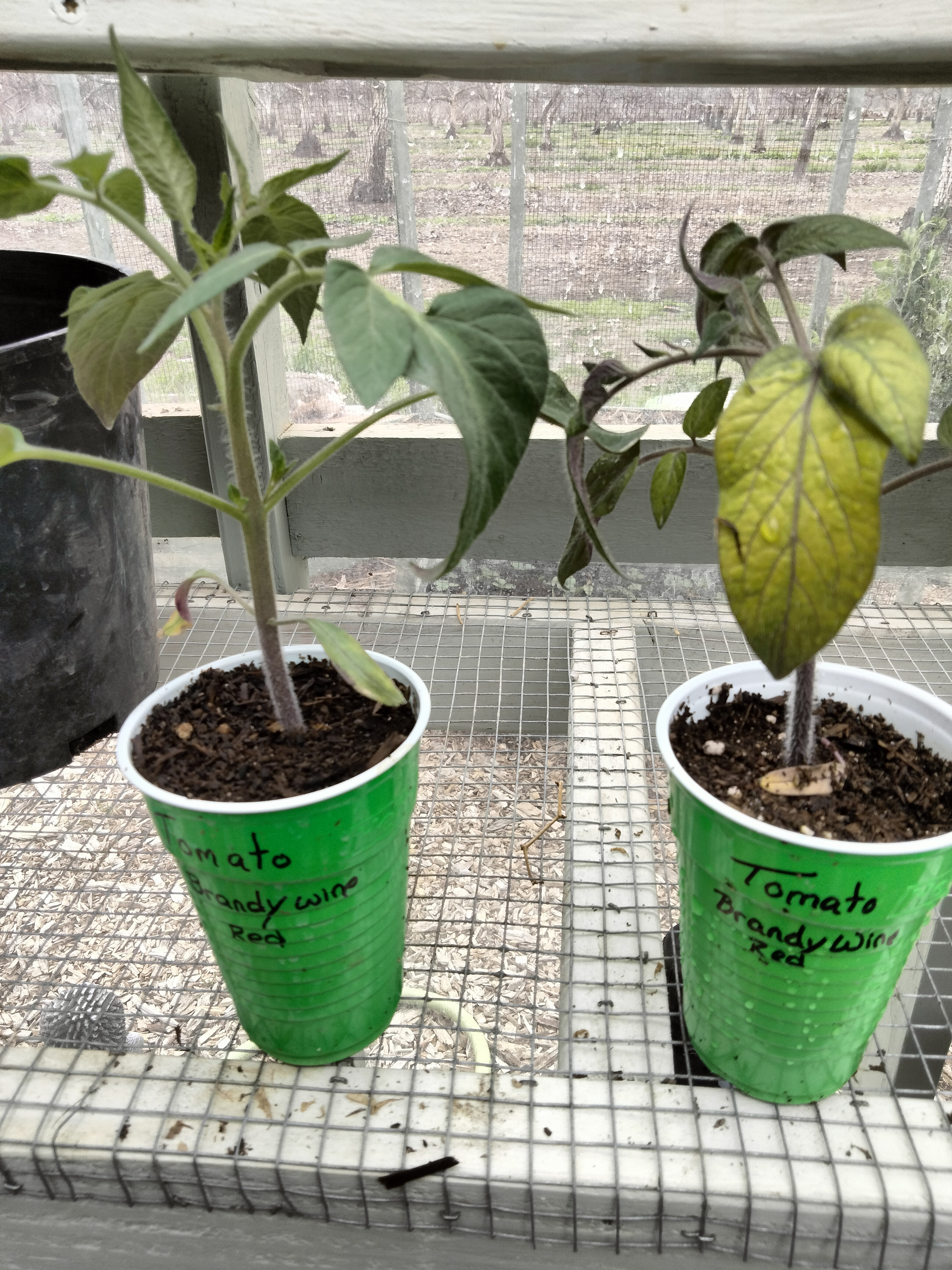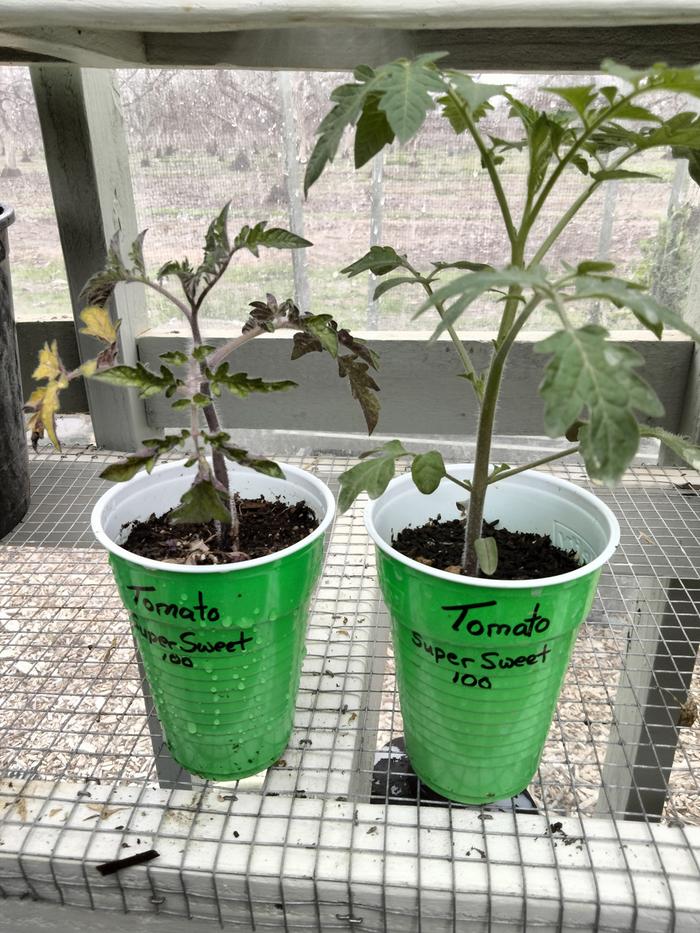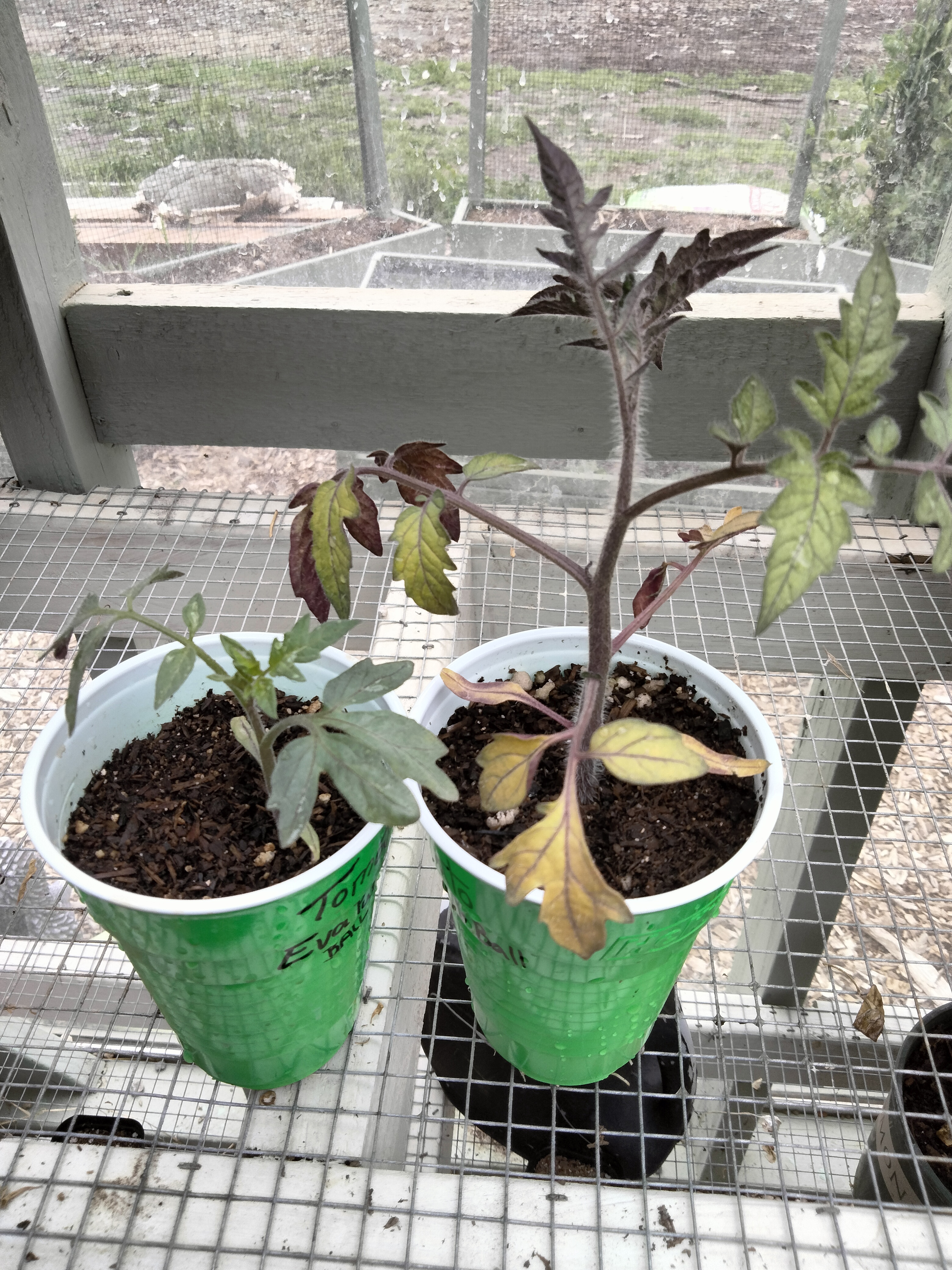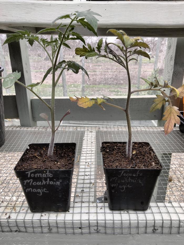 Tomato seedlings in the house versus in the unheated greenhouse