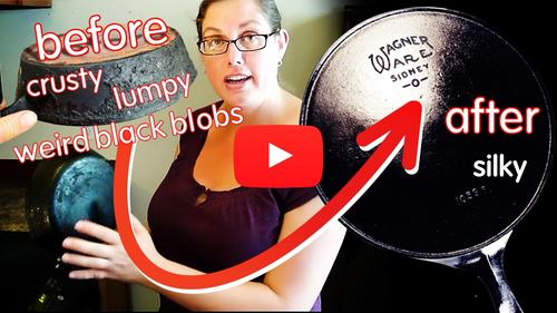 Jocelyn and Paul bring back a cast iron skillet to life using the self cleaning oven technique: