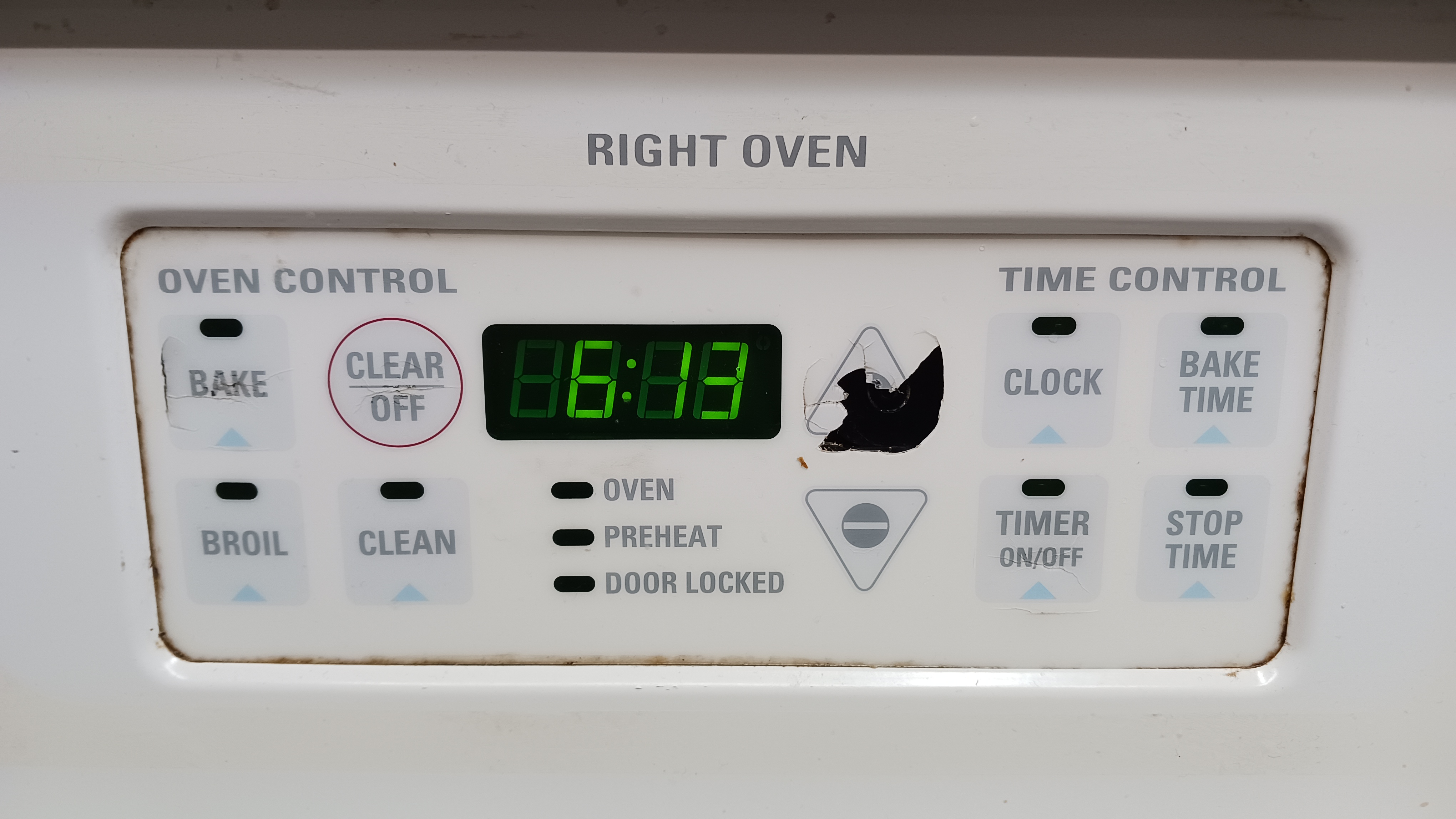 I "married into" this stove several years ago. My mother in law brought it out from Minnesota for us. It has served us well, though one of the burners doesn't work. I replaced the burners and terminals last Fall, but that one is still out of commission. Anyways, a month ago the "up" button for the oven and timer controls stopped working. The plastic overlay had broken out a year or two before. But now it wouldn't respond to any inputs.