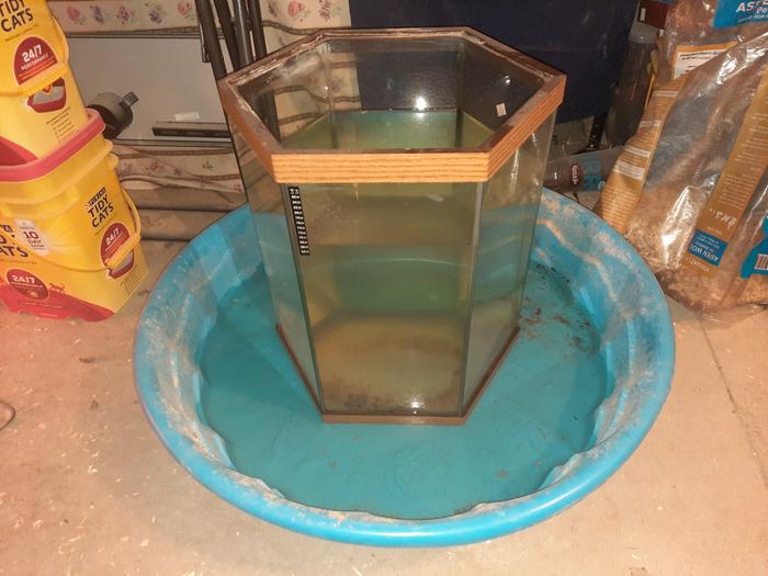 So now I need to decide: do I want to scrape away some of the silicone and try to reseal? Do I fill to just below the leak and find a way to use the top for plants and/ or filtration? Do I get something that lives in and out of the water and build a climbing/ basking area above just a little water? Other ideas?
