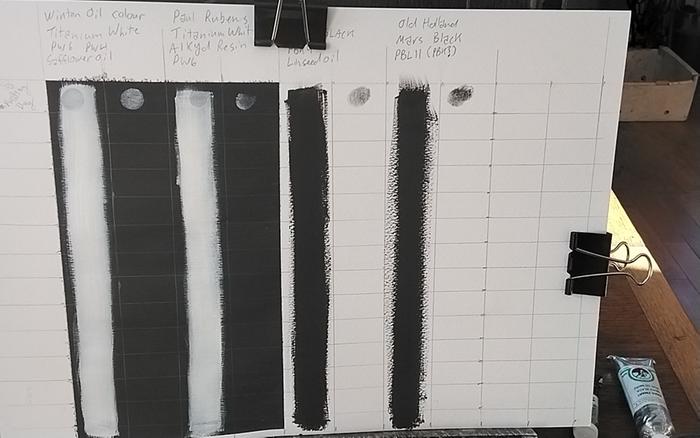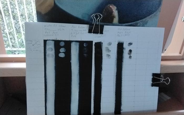 Paul Rubens took about four or five times as much paint as winton white to get an opaque layer. The paint was quite greasy and less pasty. It also didn't have a fun texture to paint with, kind of sticky.