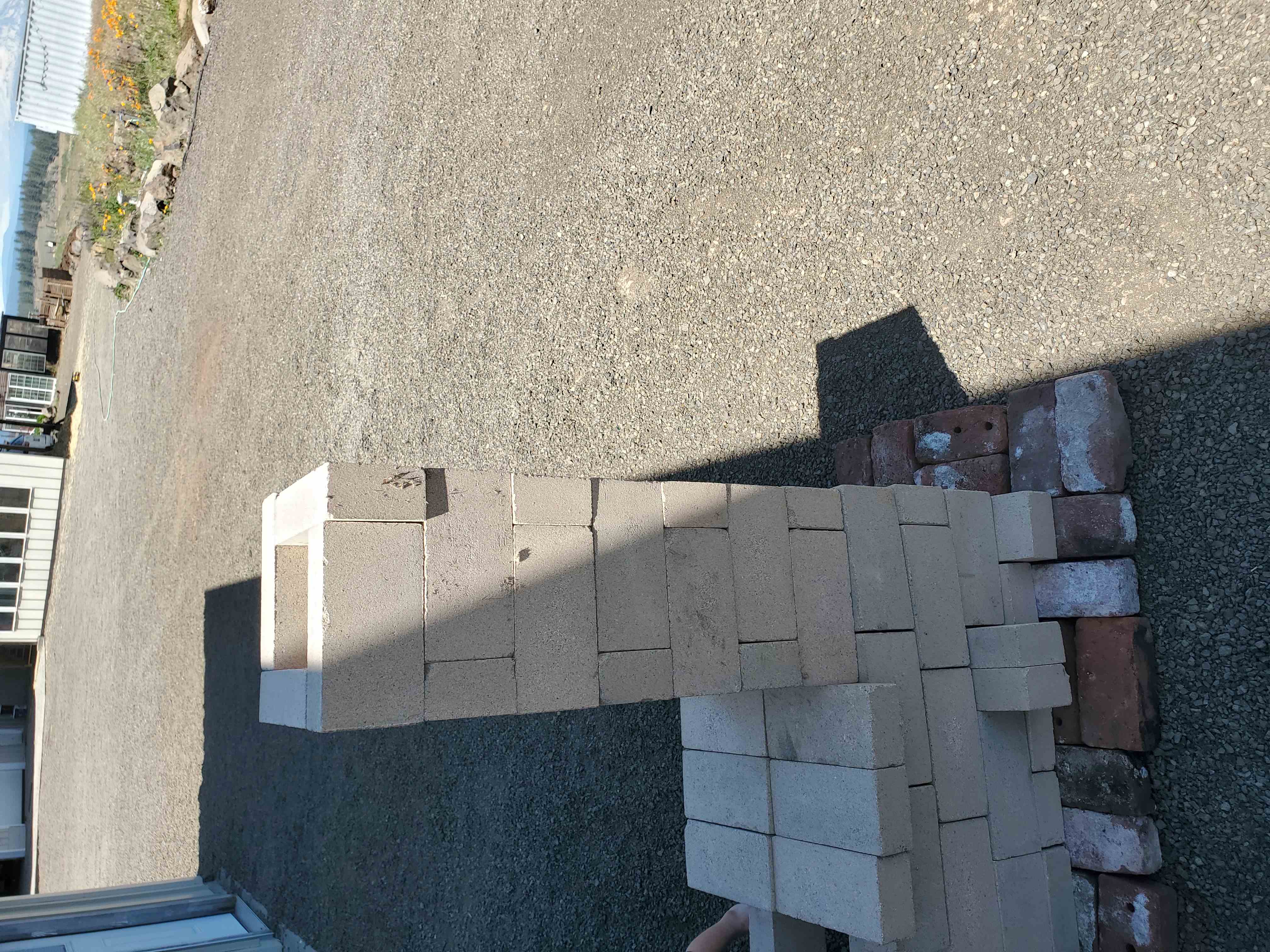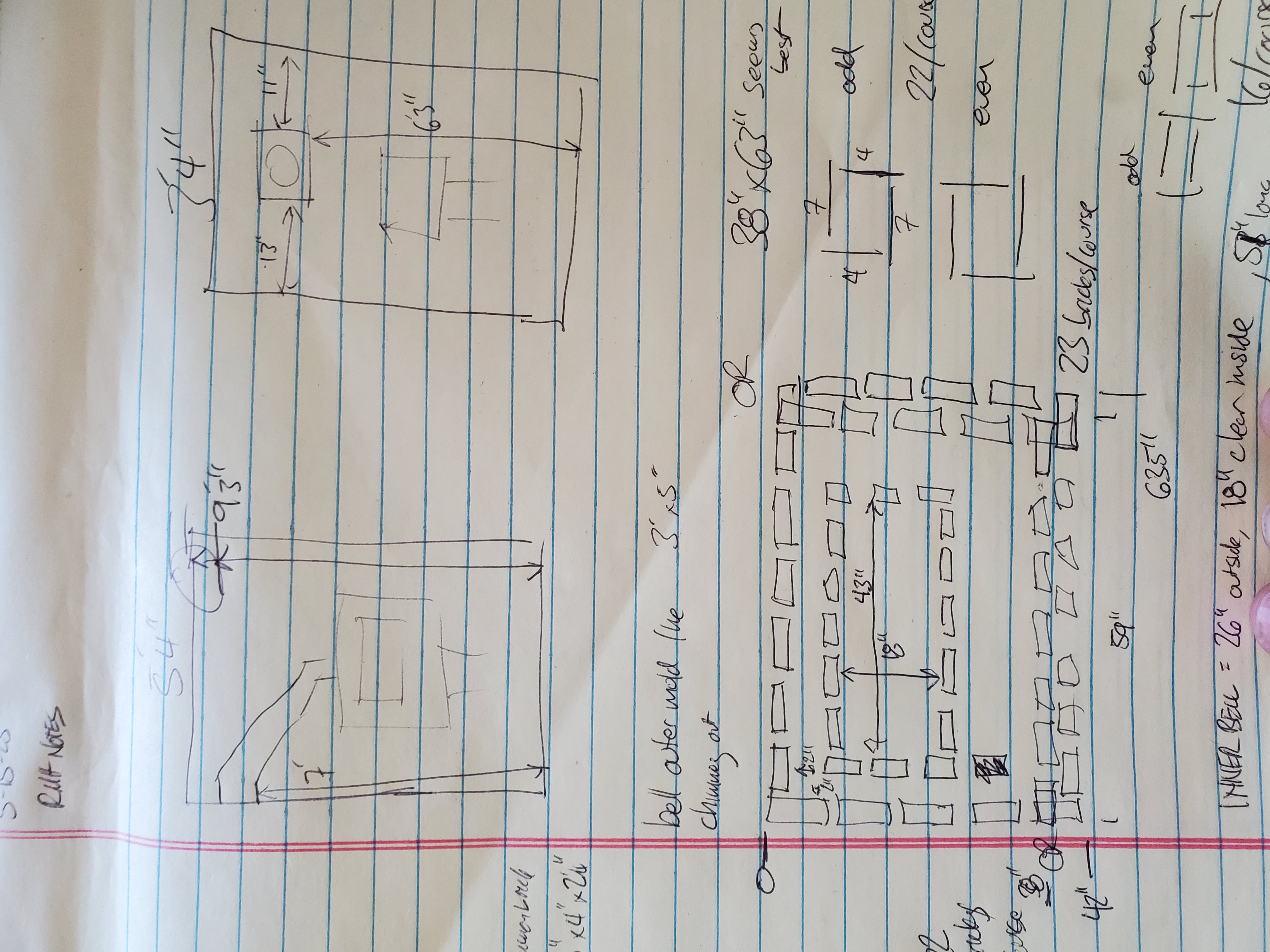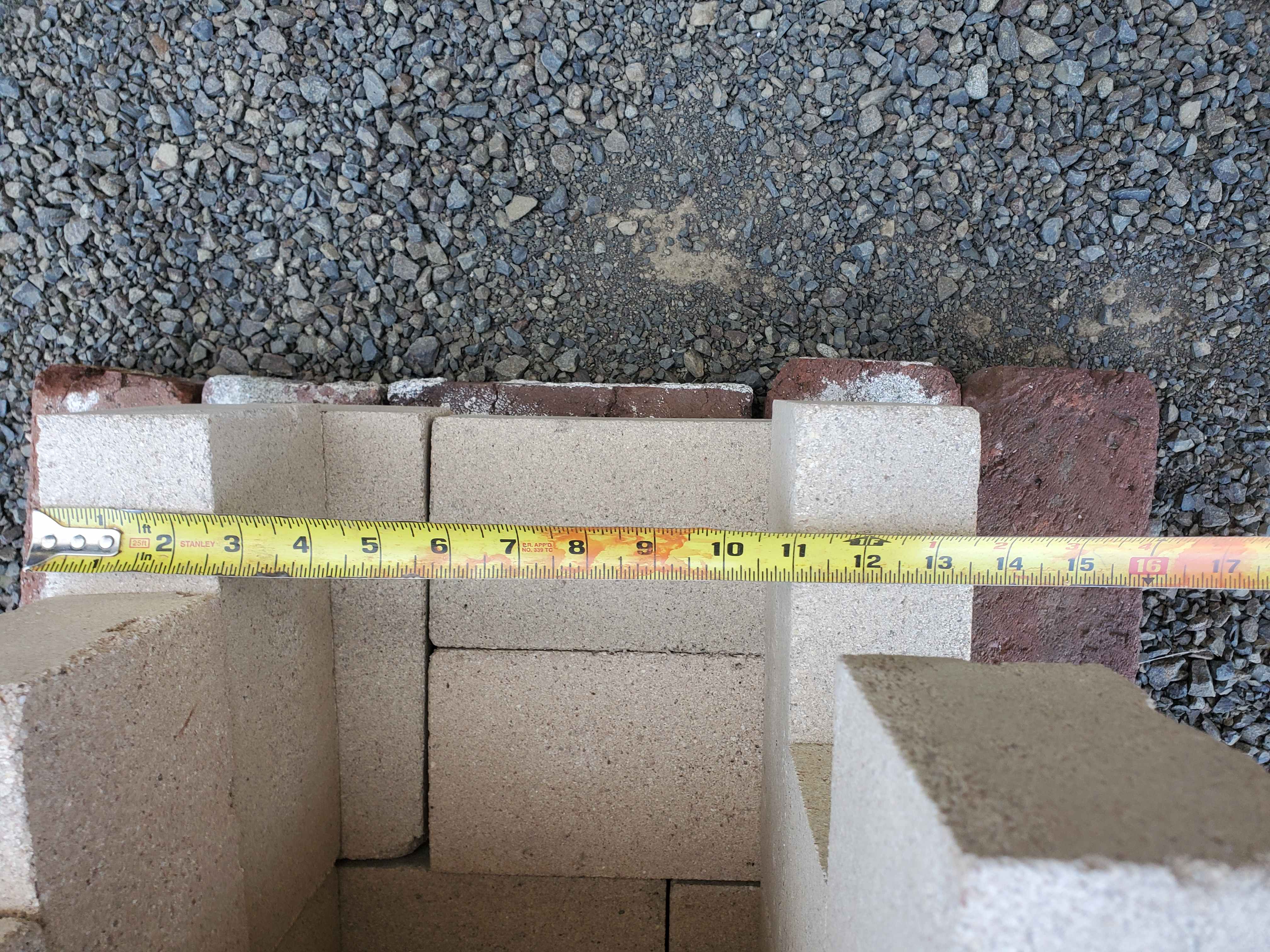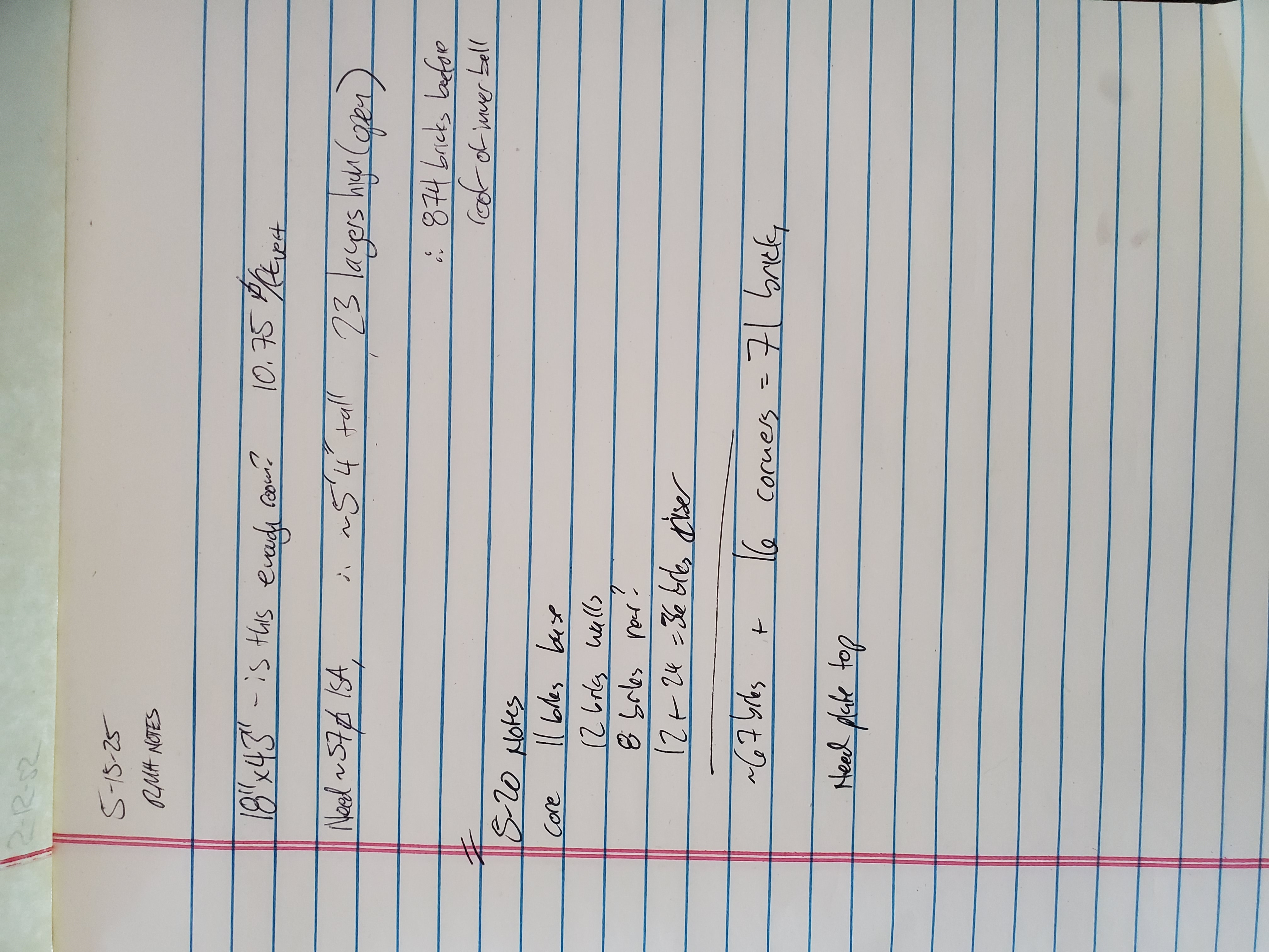 I've rough-sketched the space I am working with, dry-stacked a mock core to get a sense for the size and brick count. The core concept is straight from Peter's website,