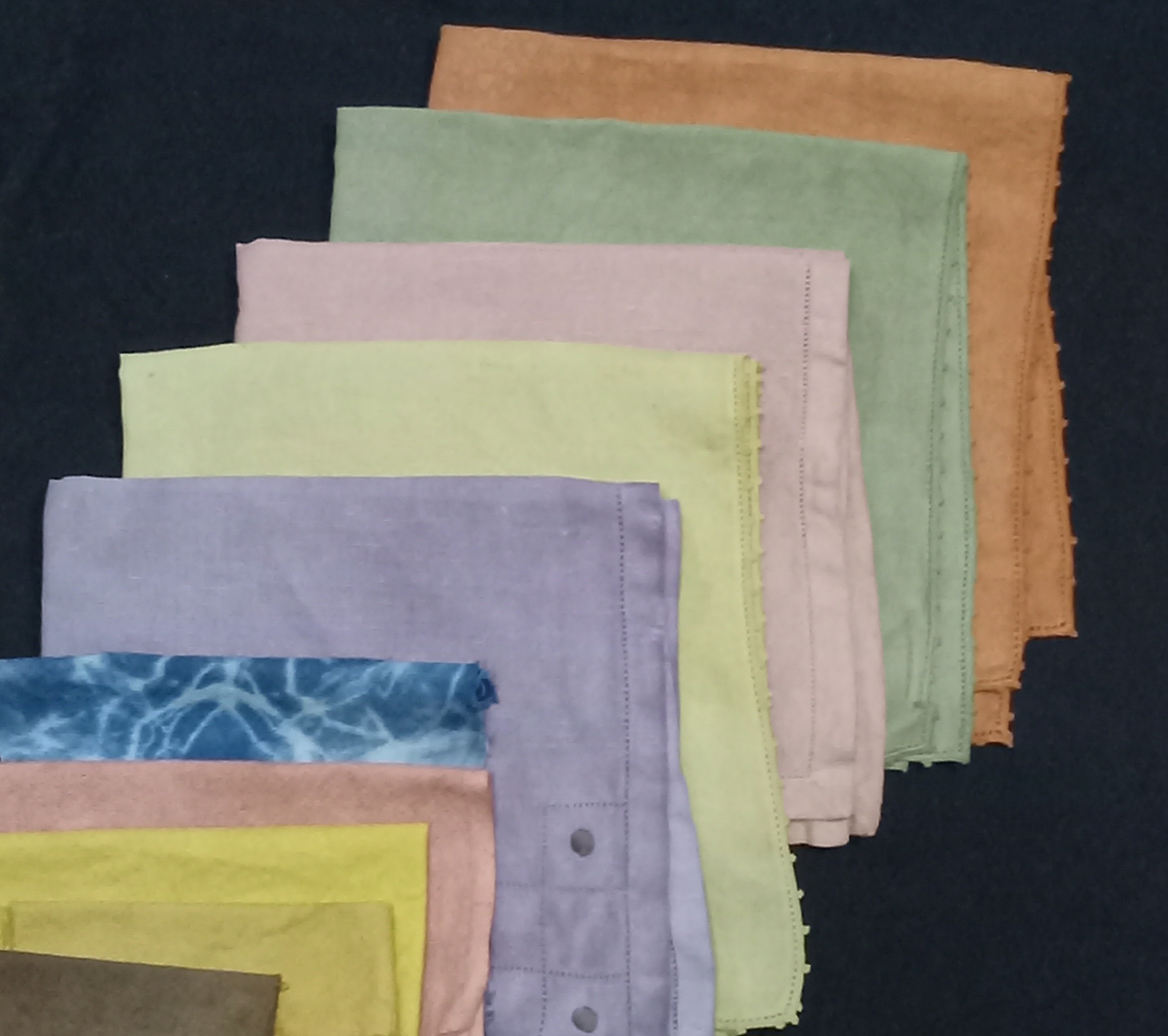 Madder, some temporary reds from berries. Woad seeds give pink. Arbutus bark is a great one for linen and sticks well even without mordant.