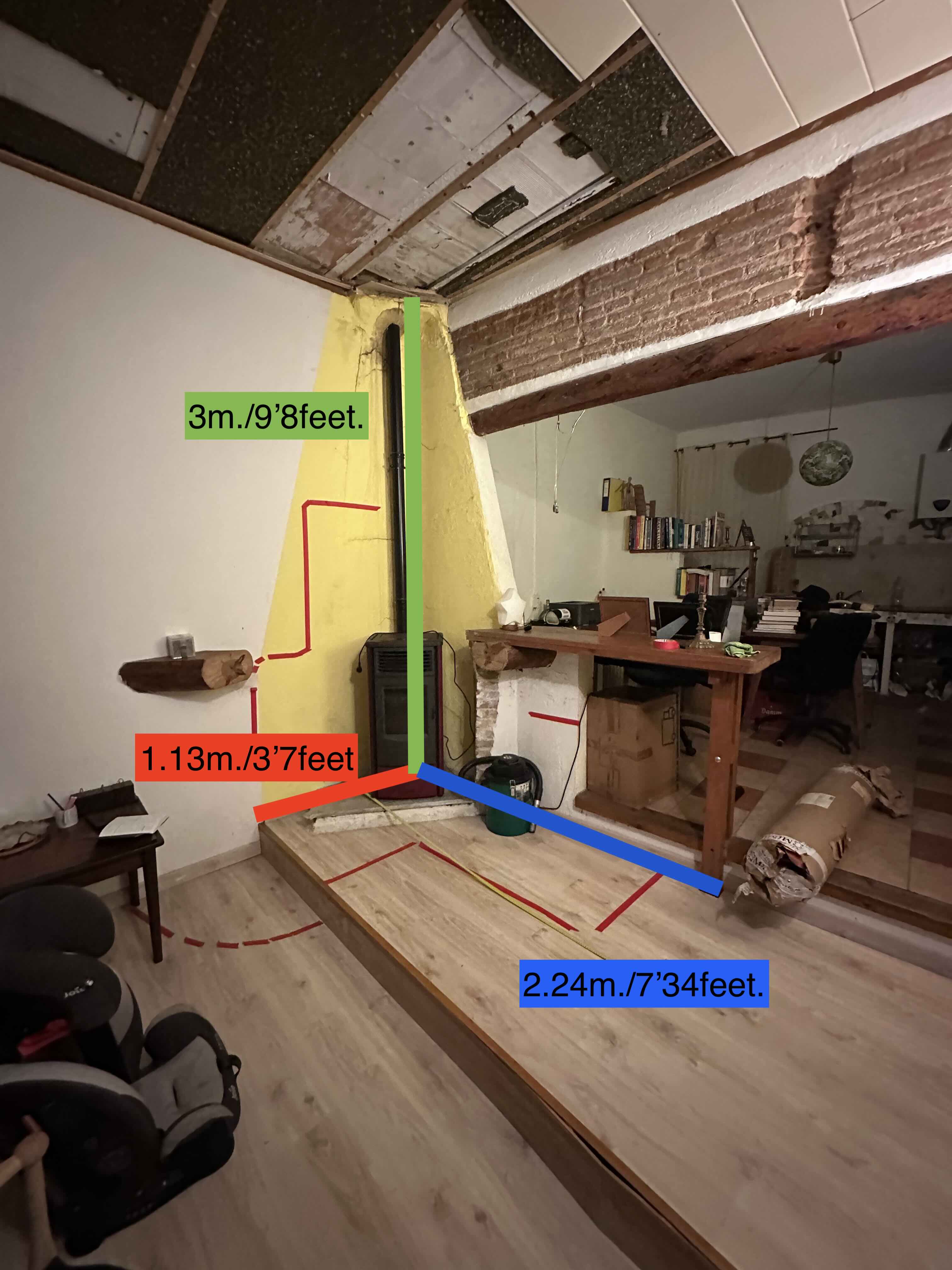 sara ventura wrote:-Is 3 or 2 cm space enough to leave between the pipe and the internal walls? The exit pipe will have an angle as it is because of the thickness of the wall of the stove, so I may well place it wherever I want.