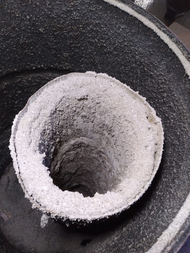 The firebrick liner inside the higher portions of the bell could be split bricks, probably 3 cm thickness.