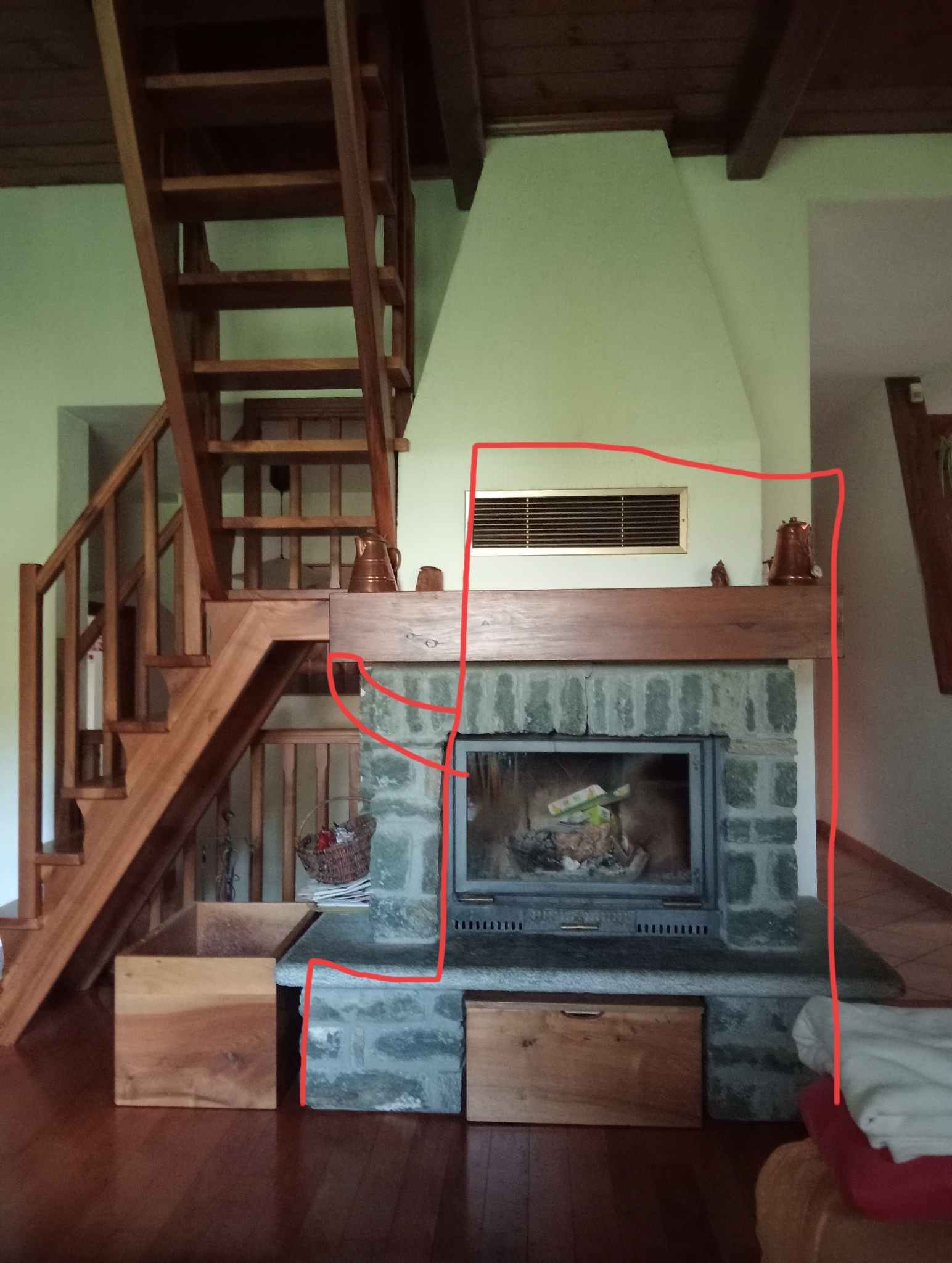 the size of the combustion unit for this project is determined by the existing flue pipe and cannot be modified, it is a rectangular pipe 15cmx 30cm not insulated, therefore a combustion unit of 20cm, quite a dragon!