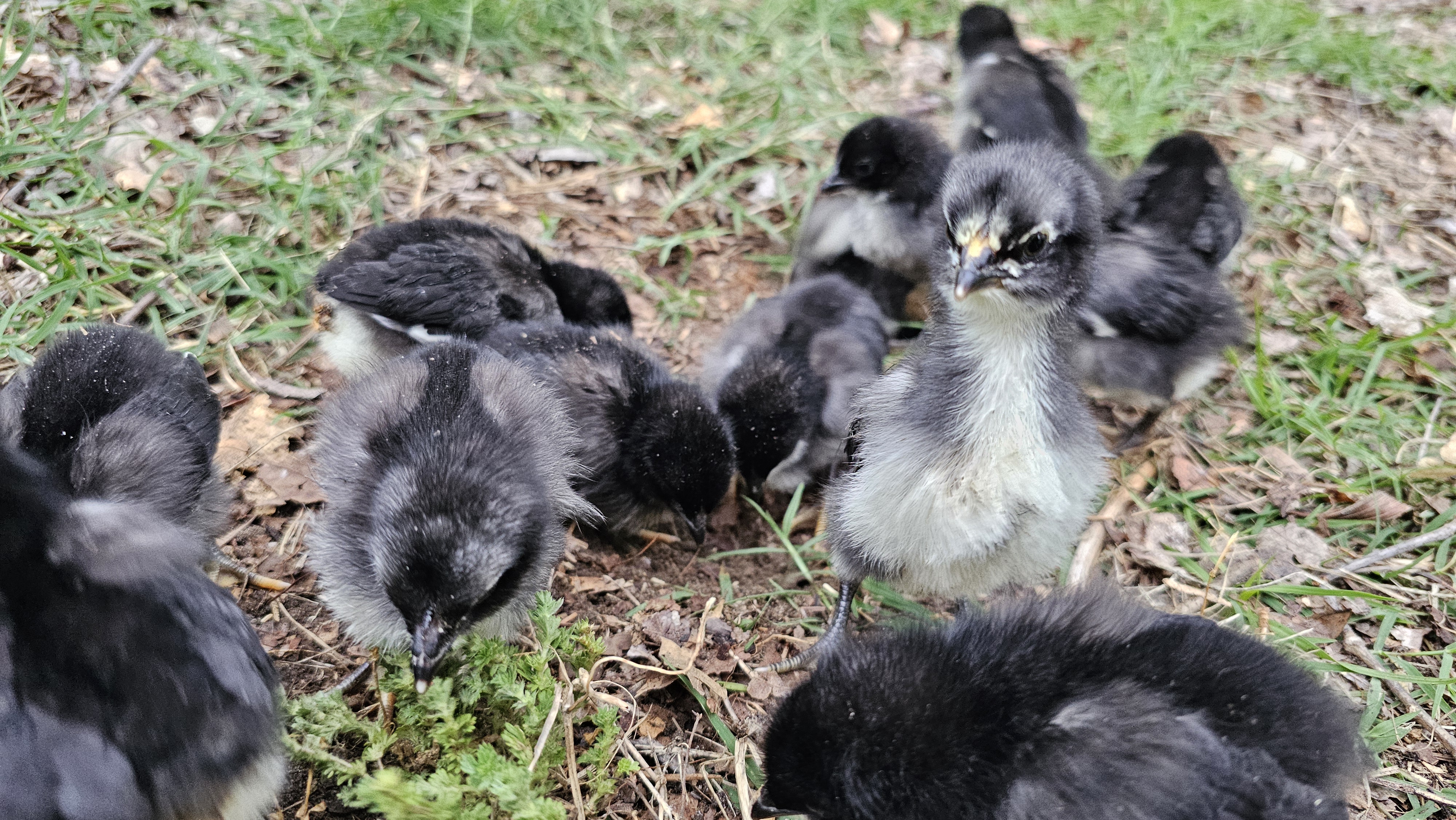 They are a little over a week old and I have taken them outside a few times, and they seem to be pretty good at searching for food and have had fun running and scratching around.