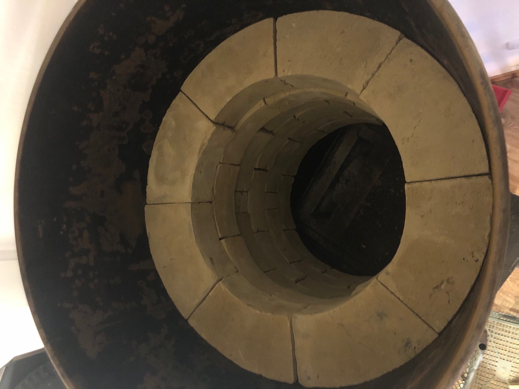 There aren't pavers in the path of the hottest gases, but firebricks instead, five to be precise.
