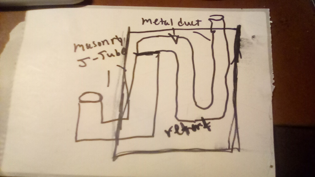 Since I want to make a bigger retort than 55 gals, I wanted to increase the surface area of hot duct so it can heat up the bigger space. If an S - shaped riser won't work, I could make it so there 2 smaller risers ( one feed tube and one burn chamber but 2 risers). Either that or put a larger diameter duct inside the retort with reducers at the inlet and outlet.