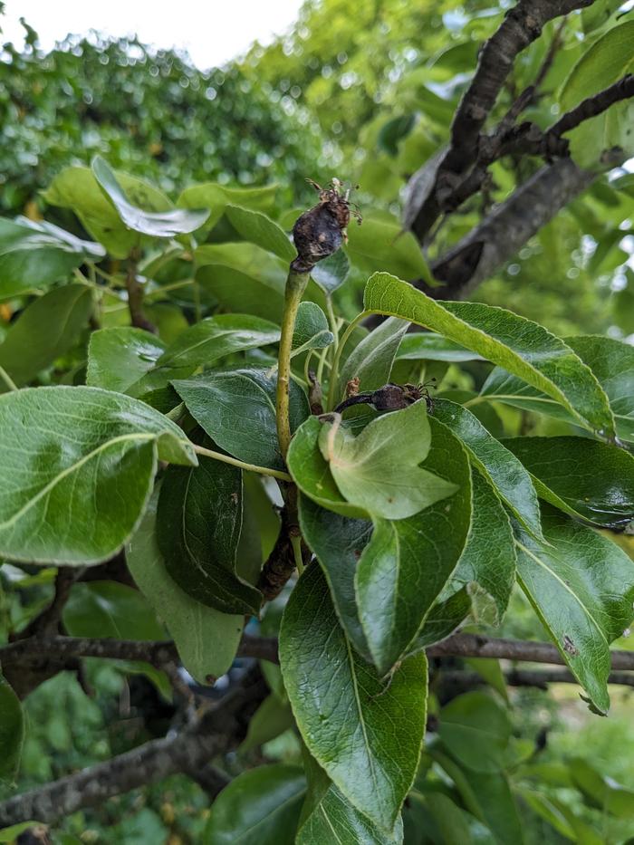 We have taken on the management of two established unknown variety dwarf rootstock pear trees. The trees look pretty healthy, and blossomed well setting a lot of fruitlets.