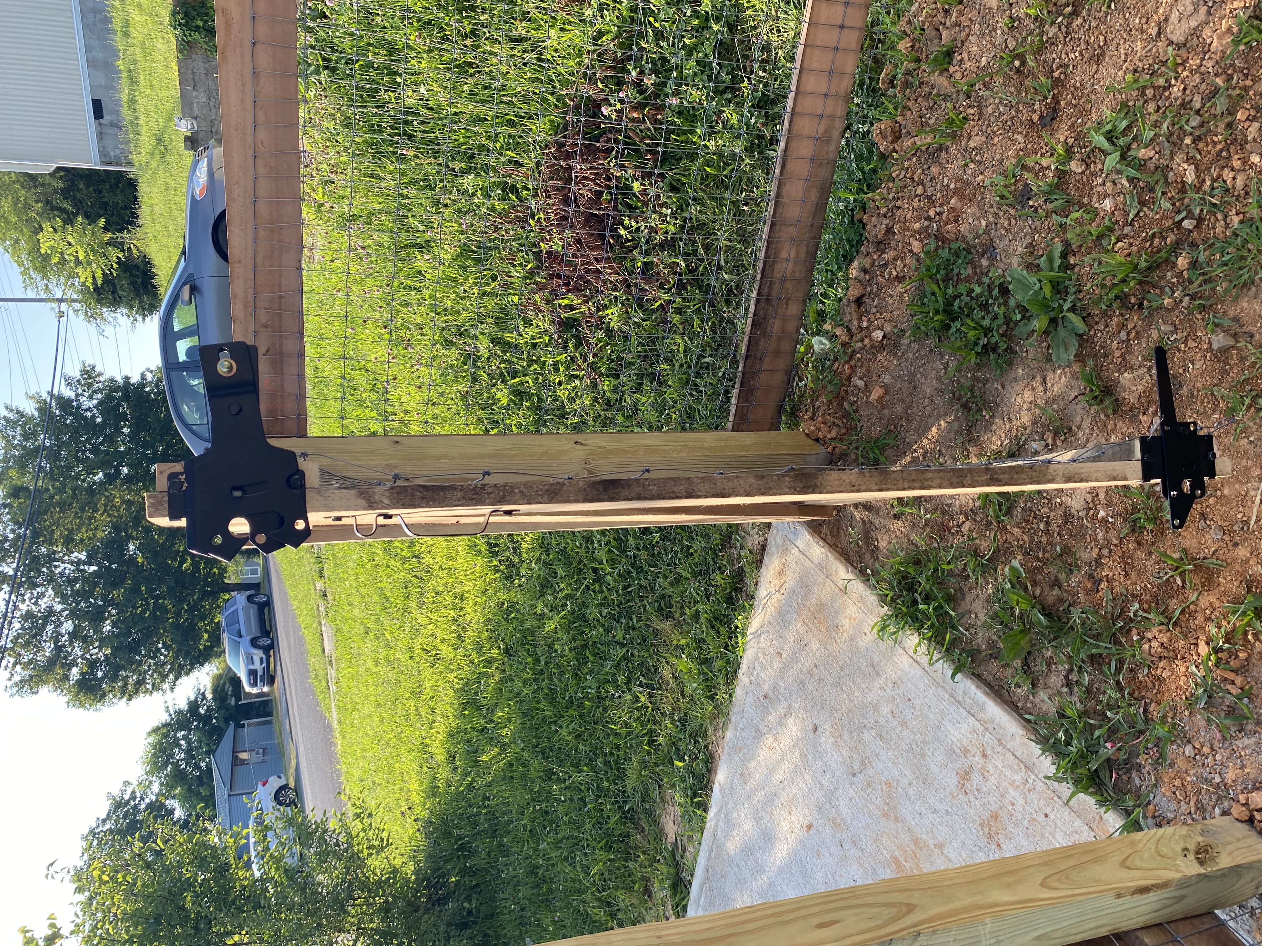 It doesn't seem like having the connector rod on the public side of the gate is a good idea, even from an esthetic standpoint. Functionally, the rod would be exposed to whatever is passing through the gateway and possibly snag or break on something. If you have access to welding, I think the best solution would be adding arms to the inside of the latches so the travel is safe from traffic and clear of the gatepost.