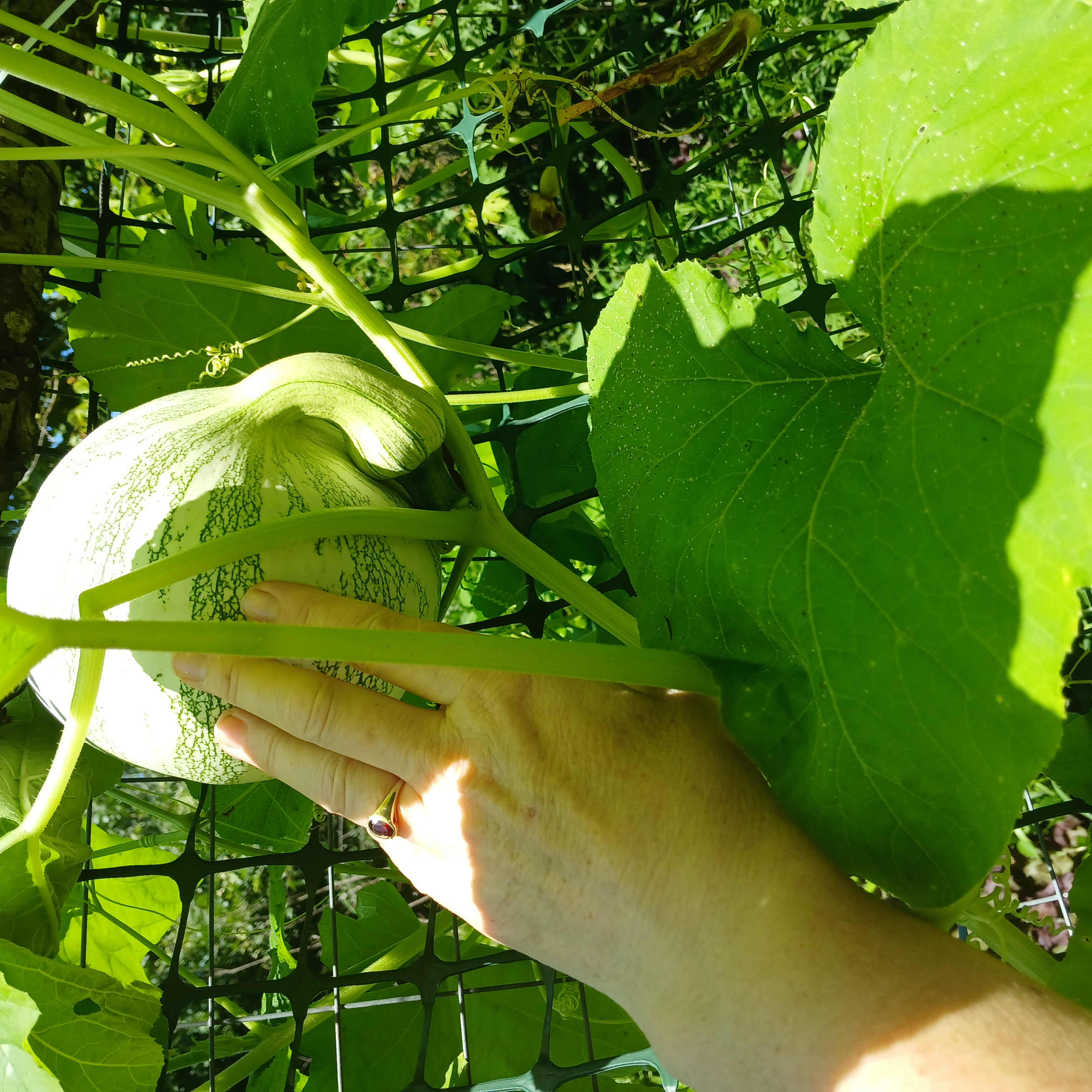 So, here is a squash that is turning cream. Size 7 men's tennishoe toe on my foot.