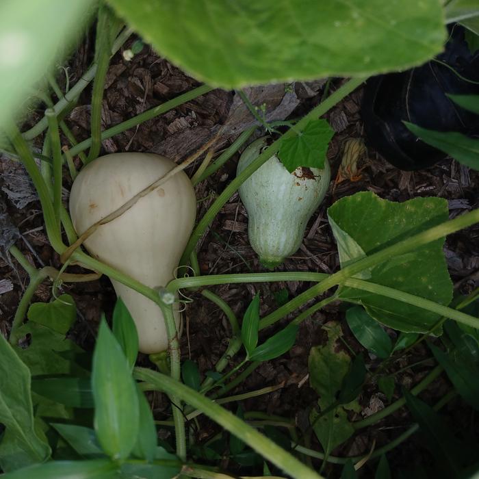 I'm not precisely new to winter squash, but I am iffy on when to harvest it. A couple years ago I had bunches of plants, more than usual production, and when they turned a buff color, I thought they were good to leave in the garden till 'I had the time to do something' with them. They rotted. Dammit.