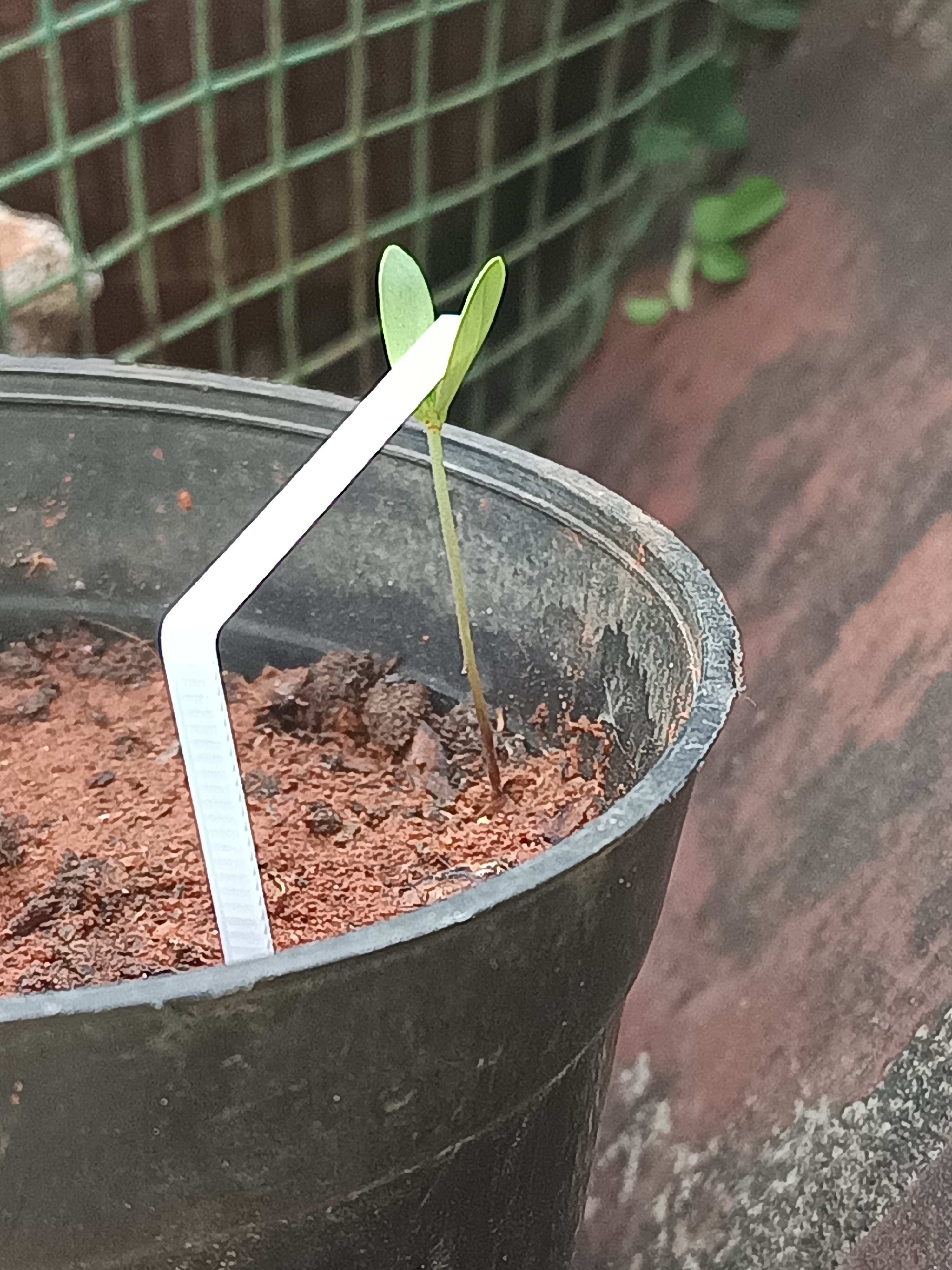 Out of 100 seeds only one germinated that too it was in cotyledon stage for about a 5 days only the cotyledons were growing big, no true leaves emerged. Now, after 7 days I see small true leaves emerging slowly. Actually its a vey rare germitaion normally it is very difficult to germinate this plant in my place due to the age of the seeds.