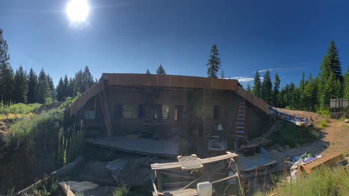 I see that manufacturer also makes a model that includes a humidity sensor. I wonder if you used 3 of them, with one sitting inside the living space, one outside, and another with the probe inserted into the earth berm, might provide some interesting comparison points. Perhaps a piece of rebar could be pushed into the earth under the umbrella through an existing gap in the wofati wall (or one is made and then patched back up) and then the probe is fed as deep as it will reach into the mass and the hole is patched up to prevent any air flow from the opening.
