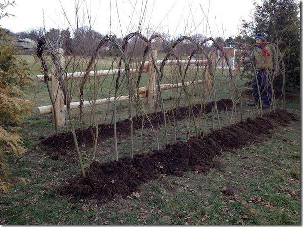 Here's a very nice illustration of building a living fence, taken from this site - Building a Living Fence