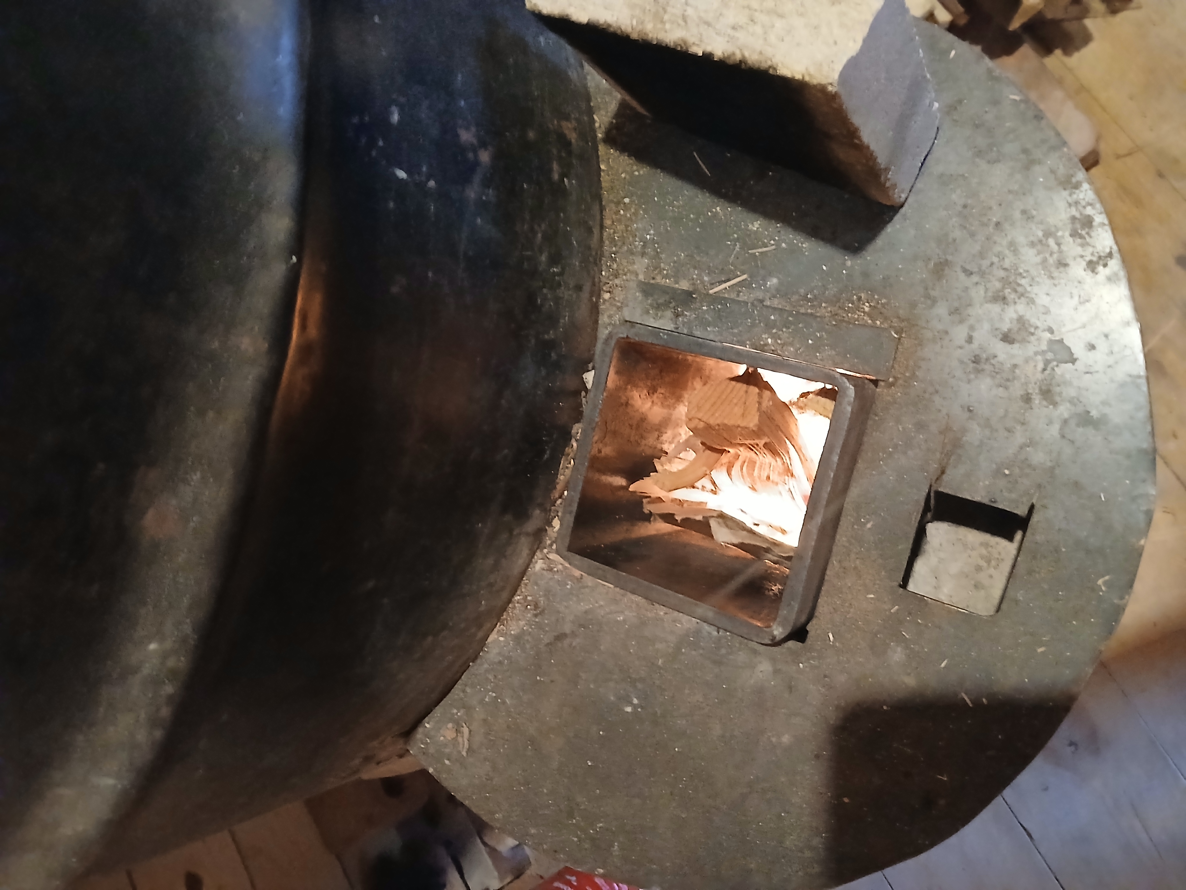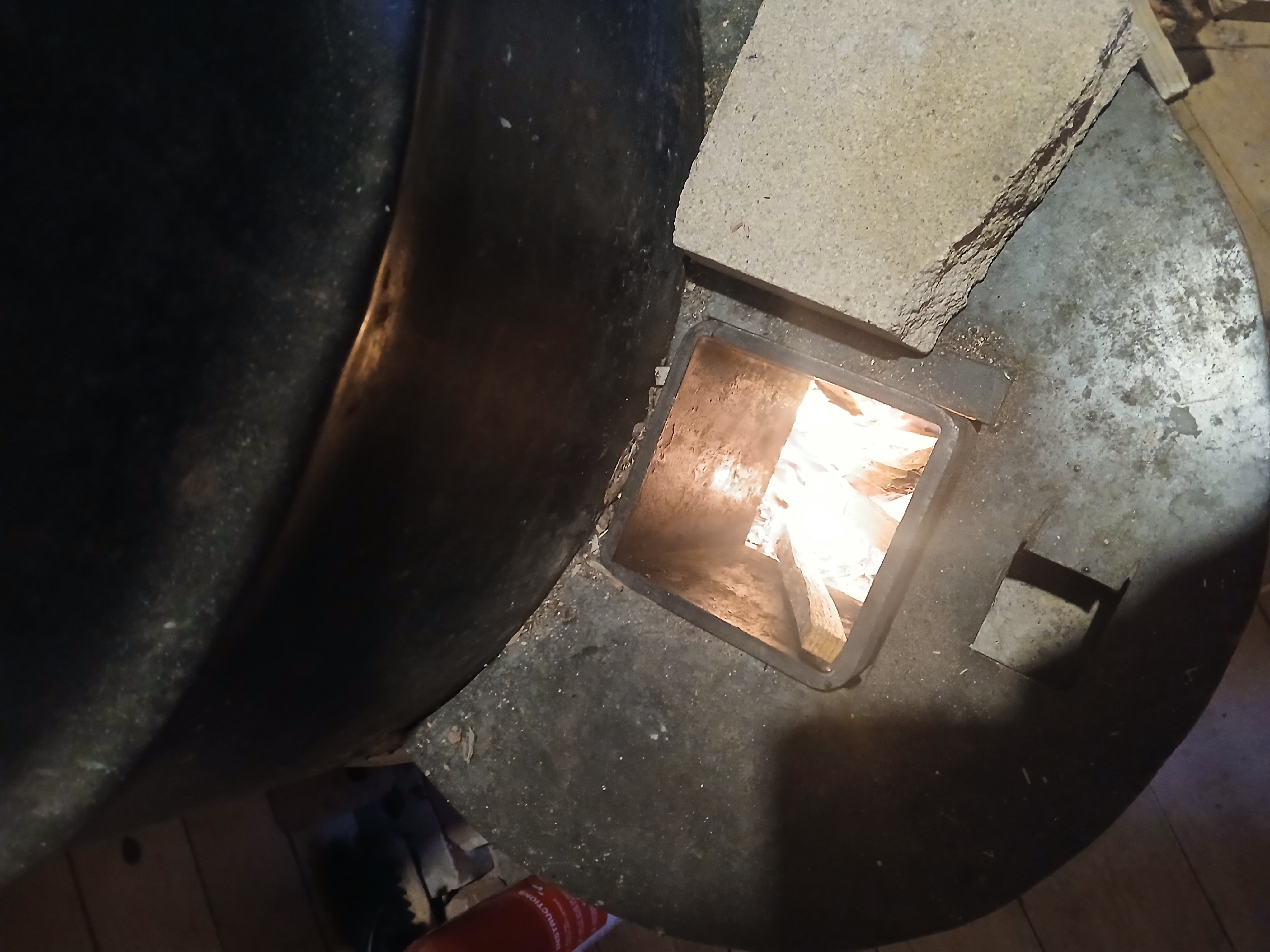 After the morning meeting, little Chapito and I headed over to the Love Shack to fire up the rocket mass heater and get things warmed up for the day.